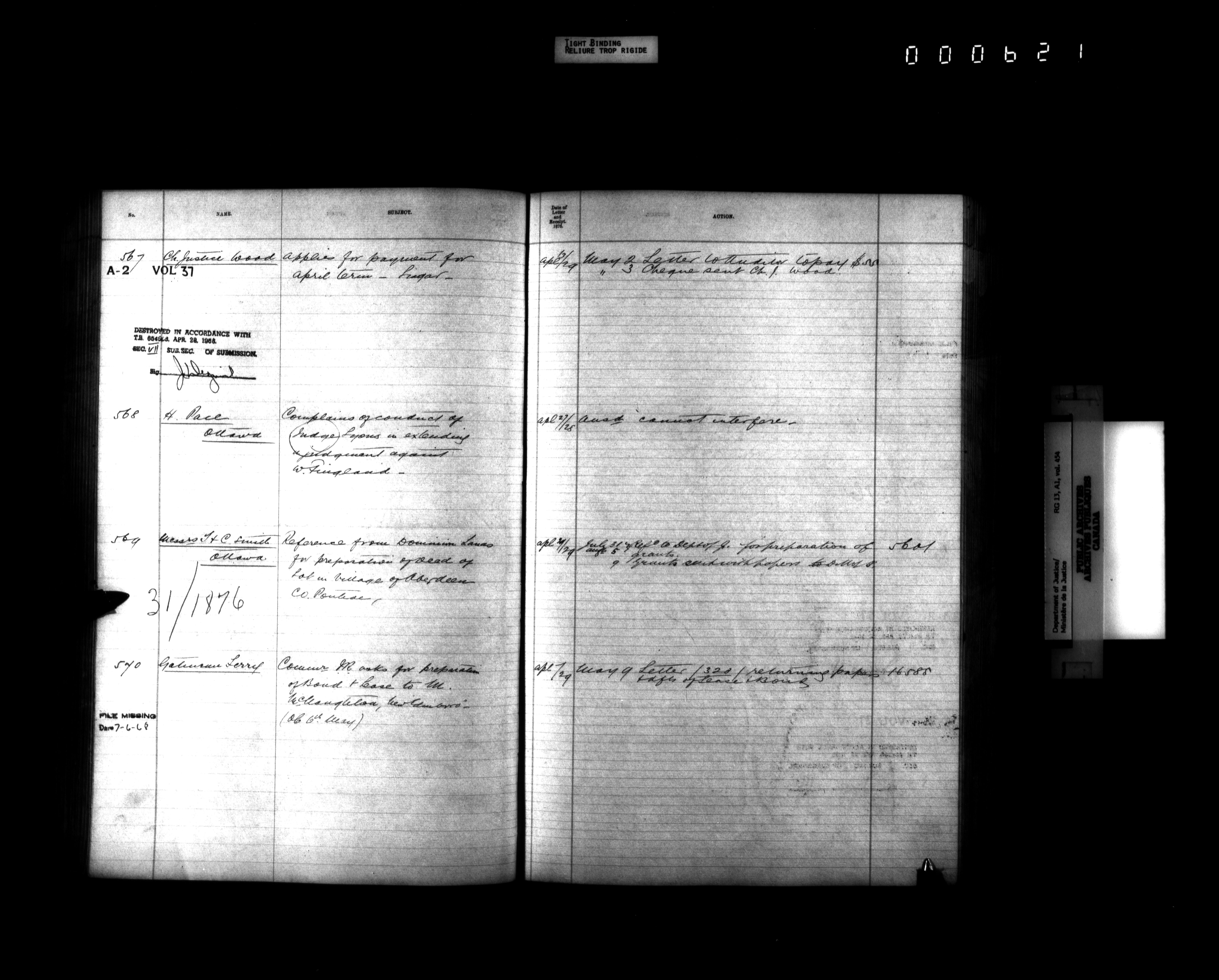 Department of Justice, Central Registry : Indexes and registers - 4326