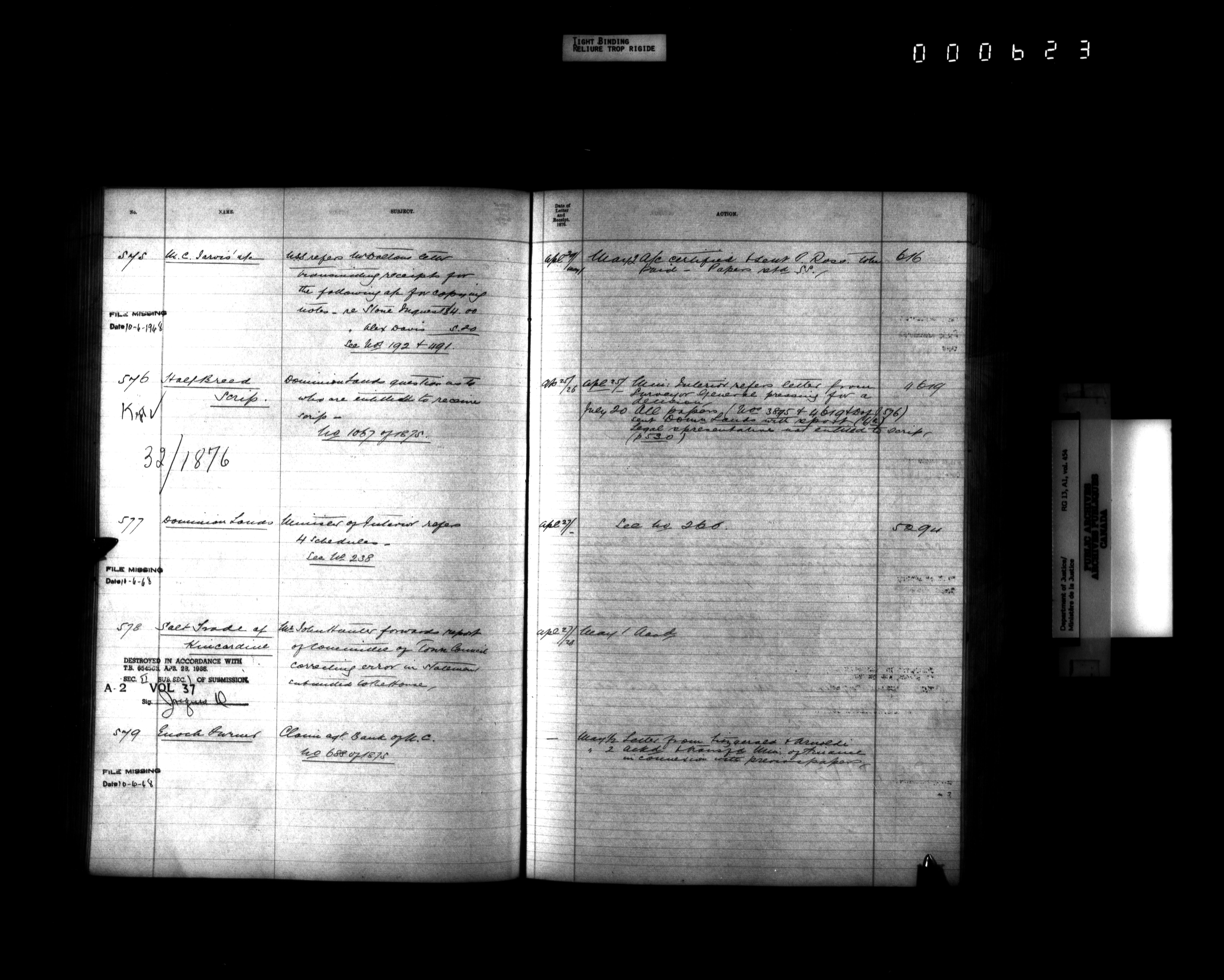 Department of Justice, Central Registry : Indexes and registers - 4326