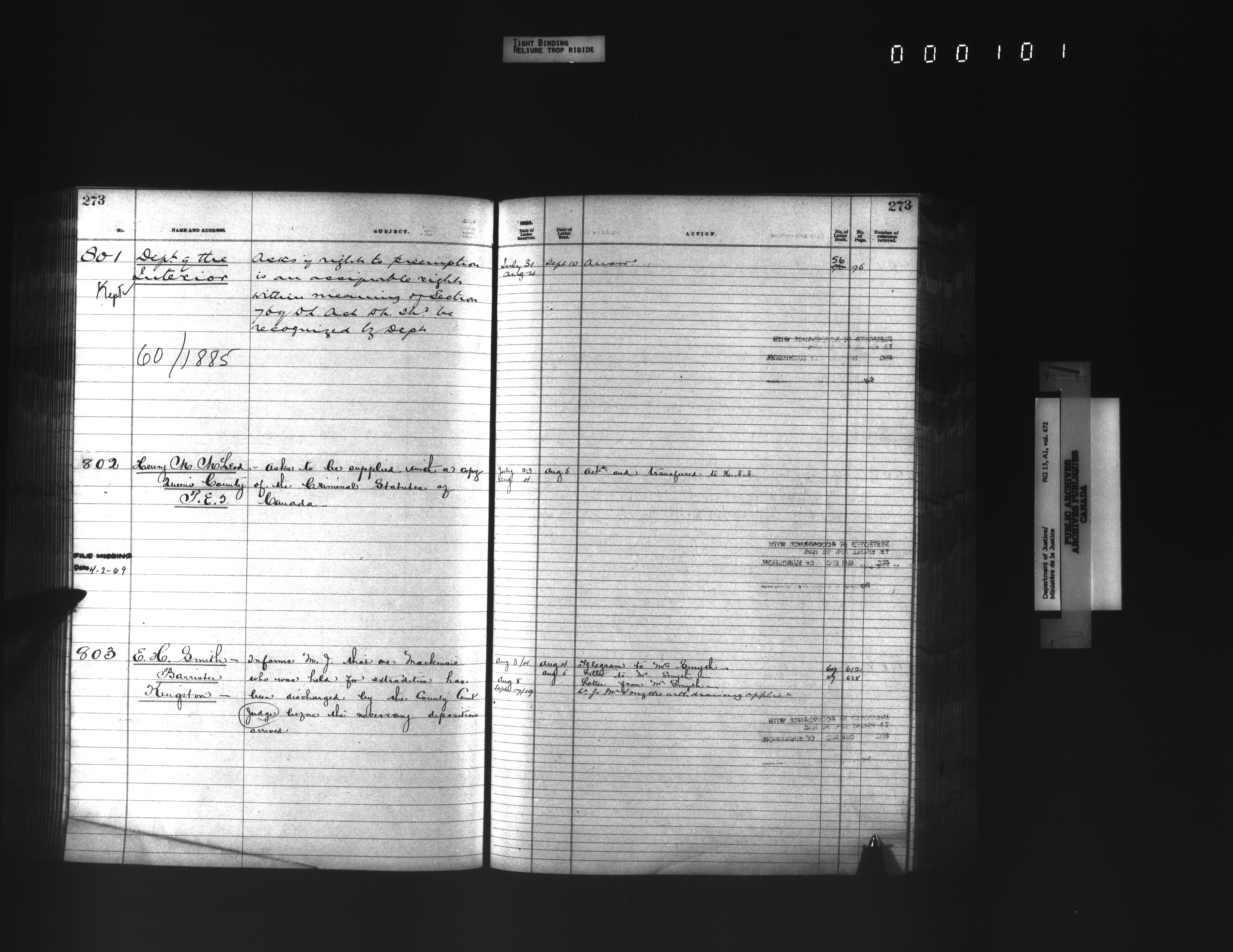 Department of Justice, Central Registry : Indexes and registers - 4334