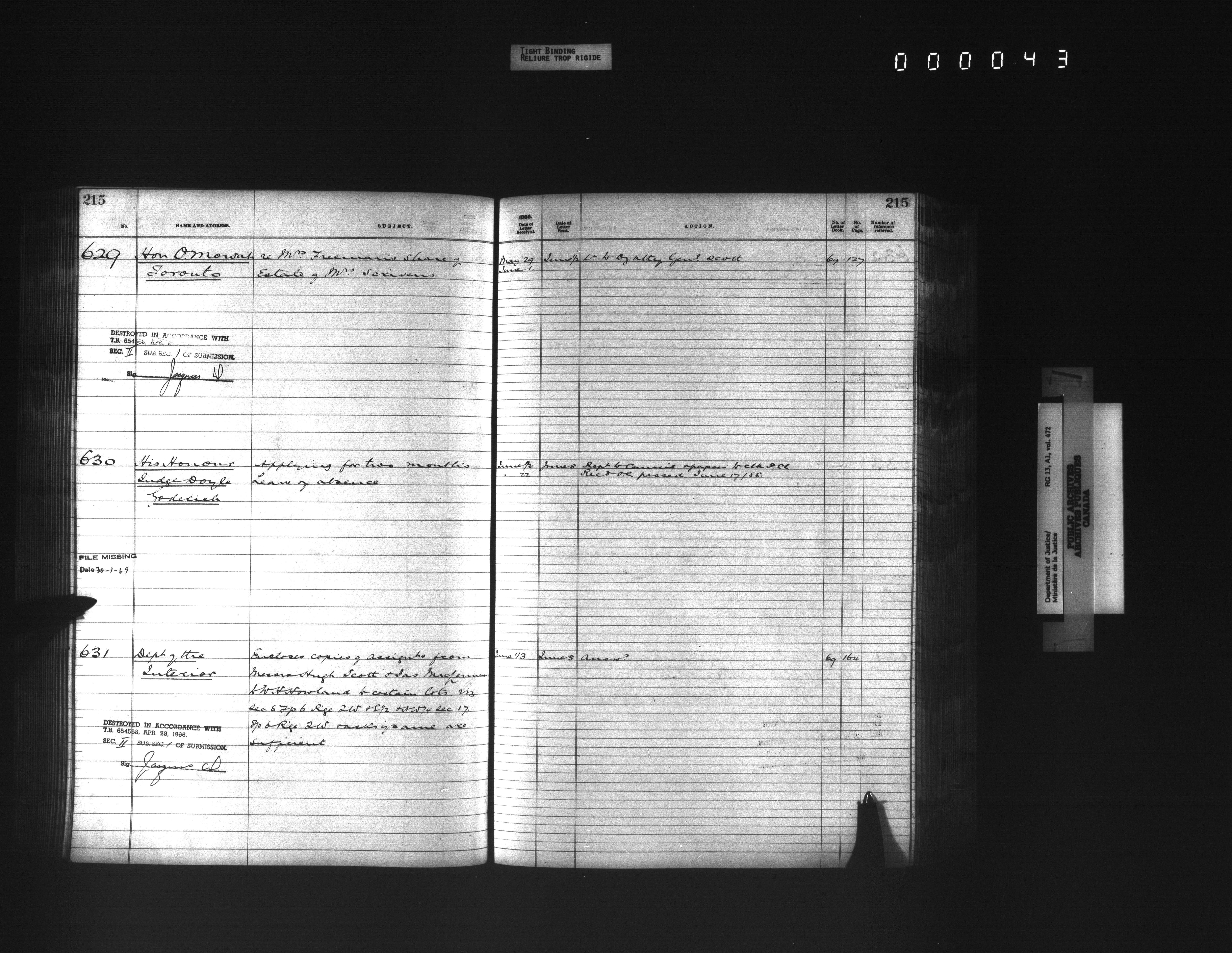 Department of Justice, Central Registry : Indexes and registers - 4334