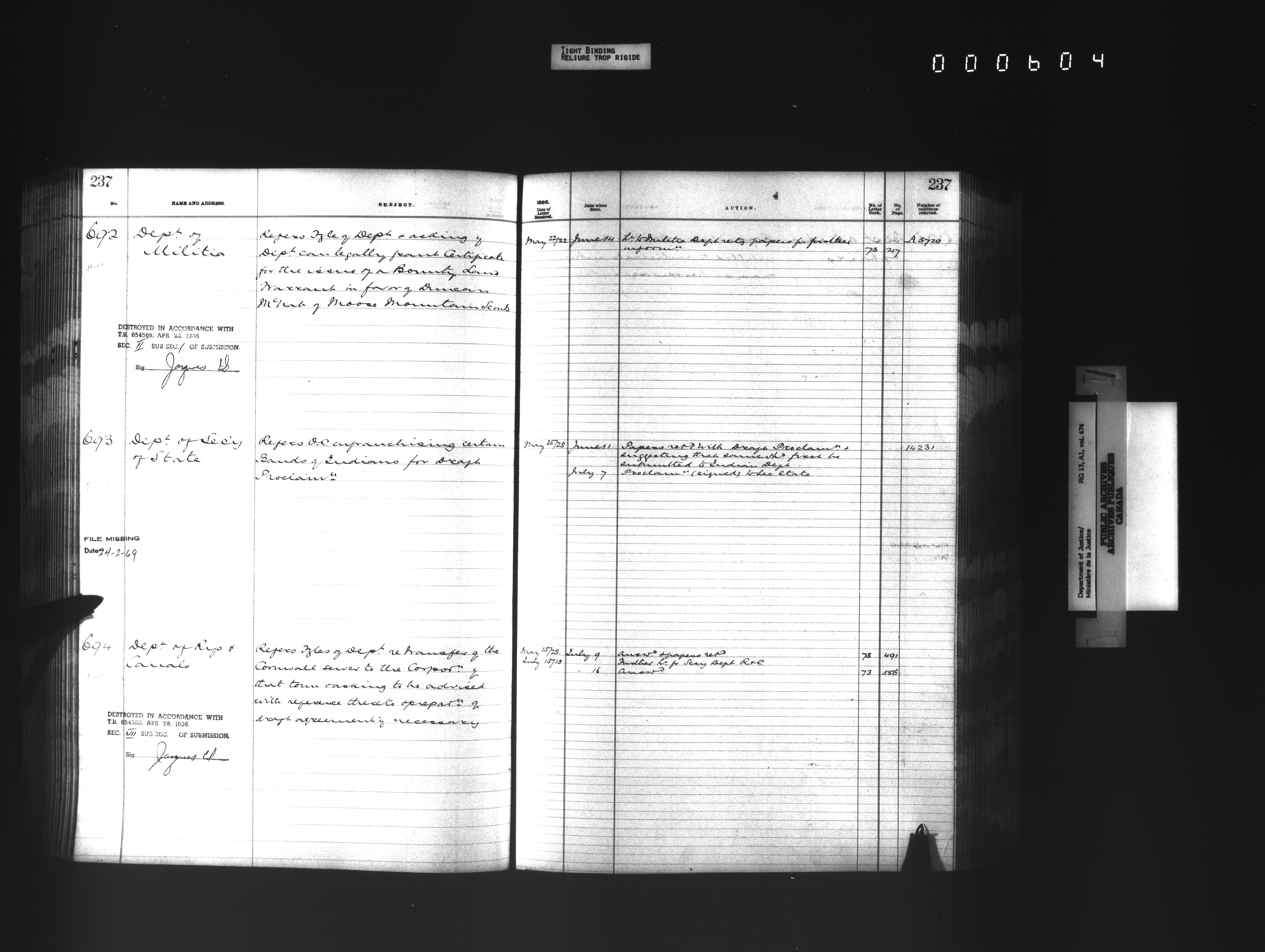 Department of Justice, Central Registry : Indexes and registers - 4334