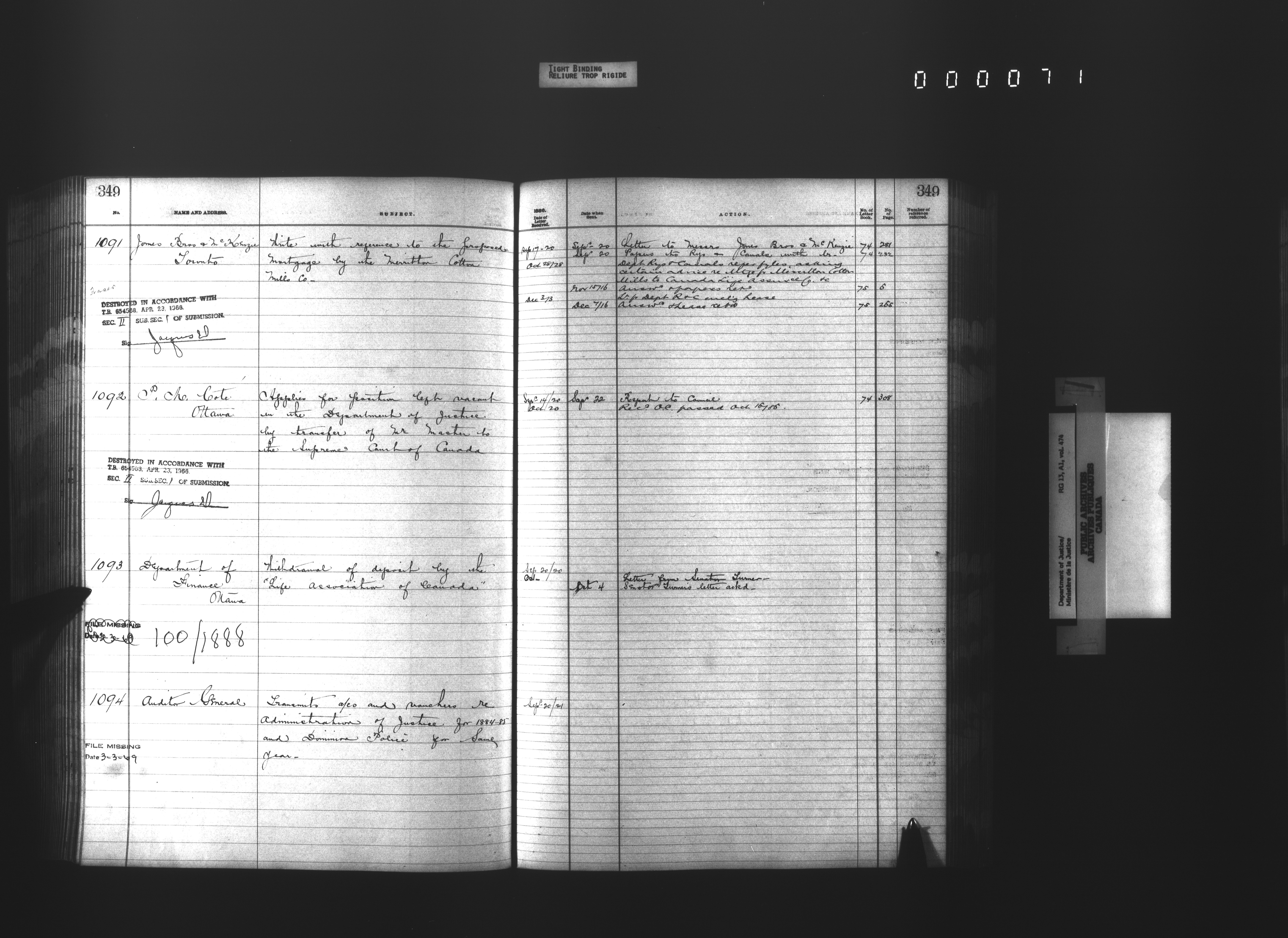 Department of Justice, Central Registry : Indexes and registers - 4335