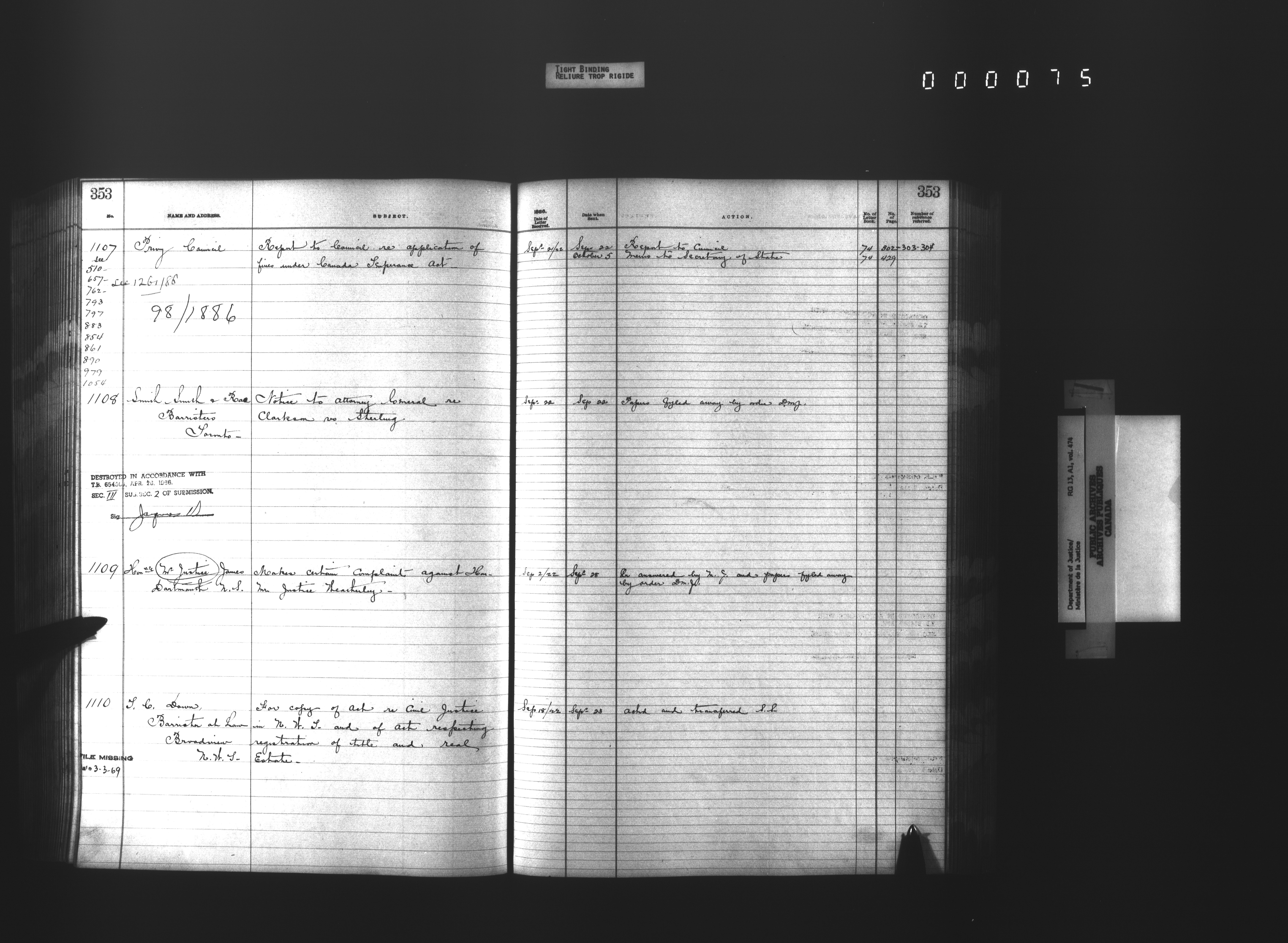 Department of Justice, Central Registry : Indexes and registers - 4335