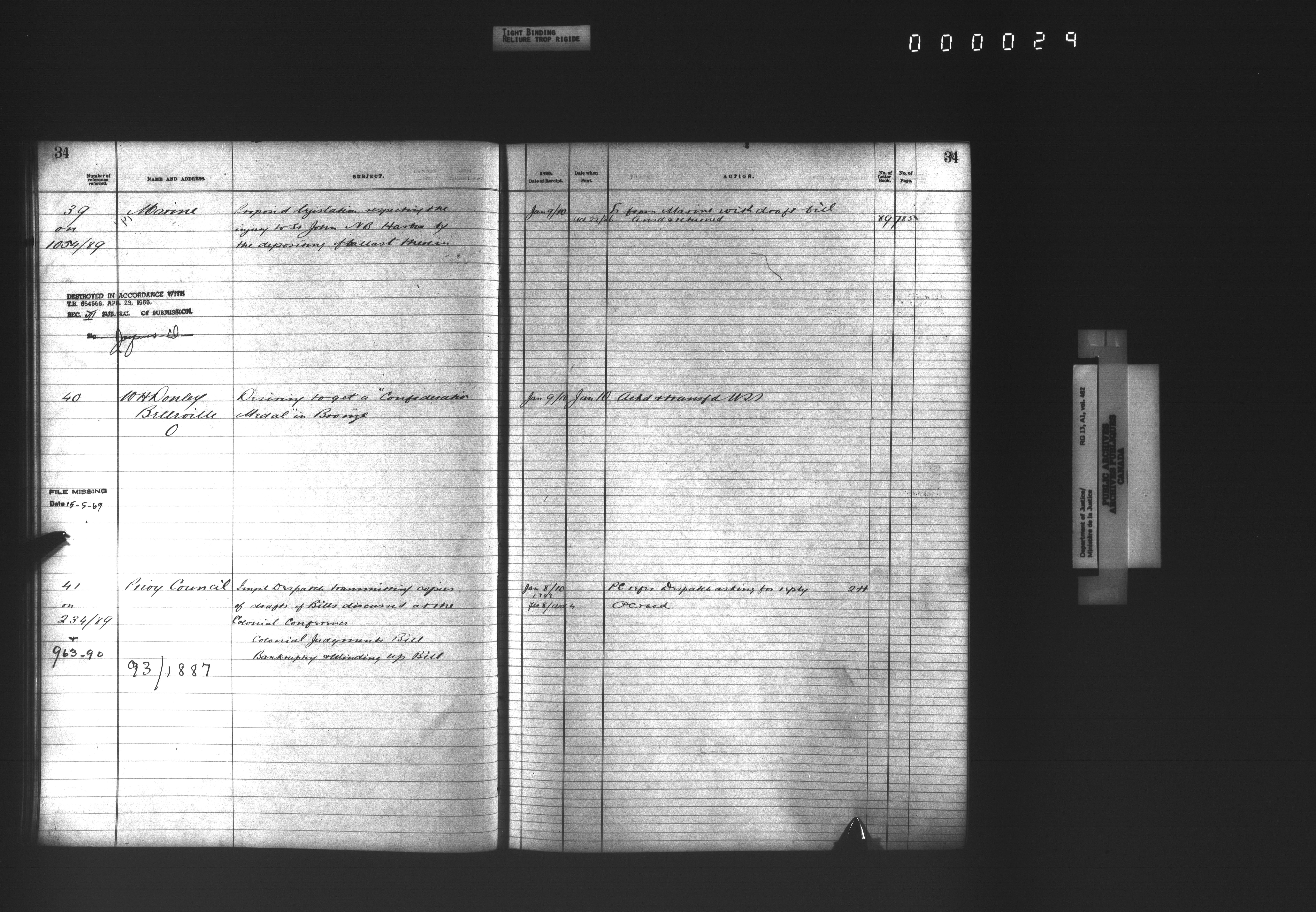 Department of Justice, Central Registry : Indexes and registers - 4338