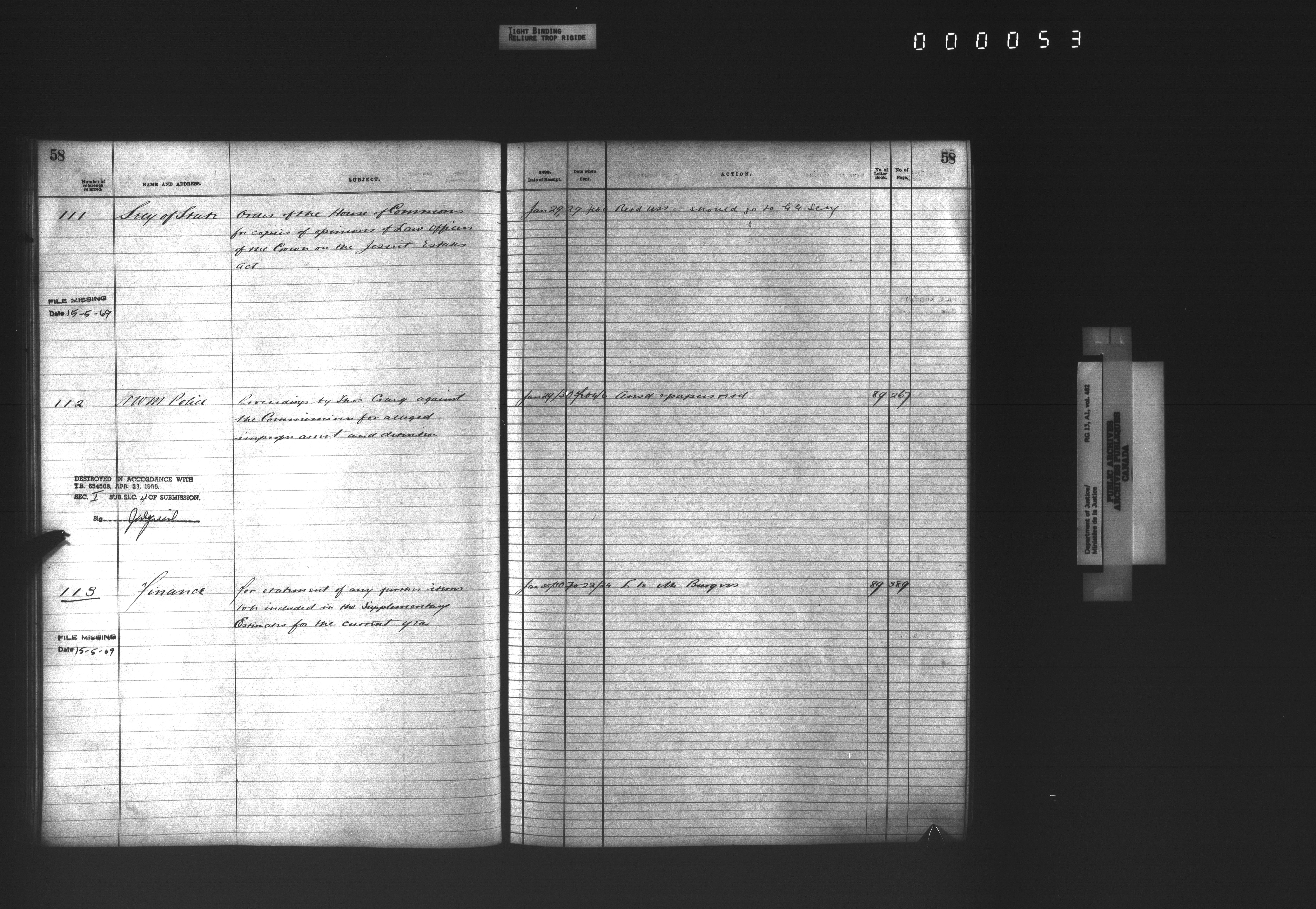 Department of Justice, Central Registry : Indexes and registers - 4338