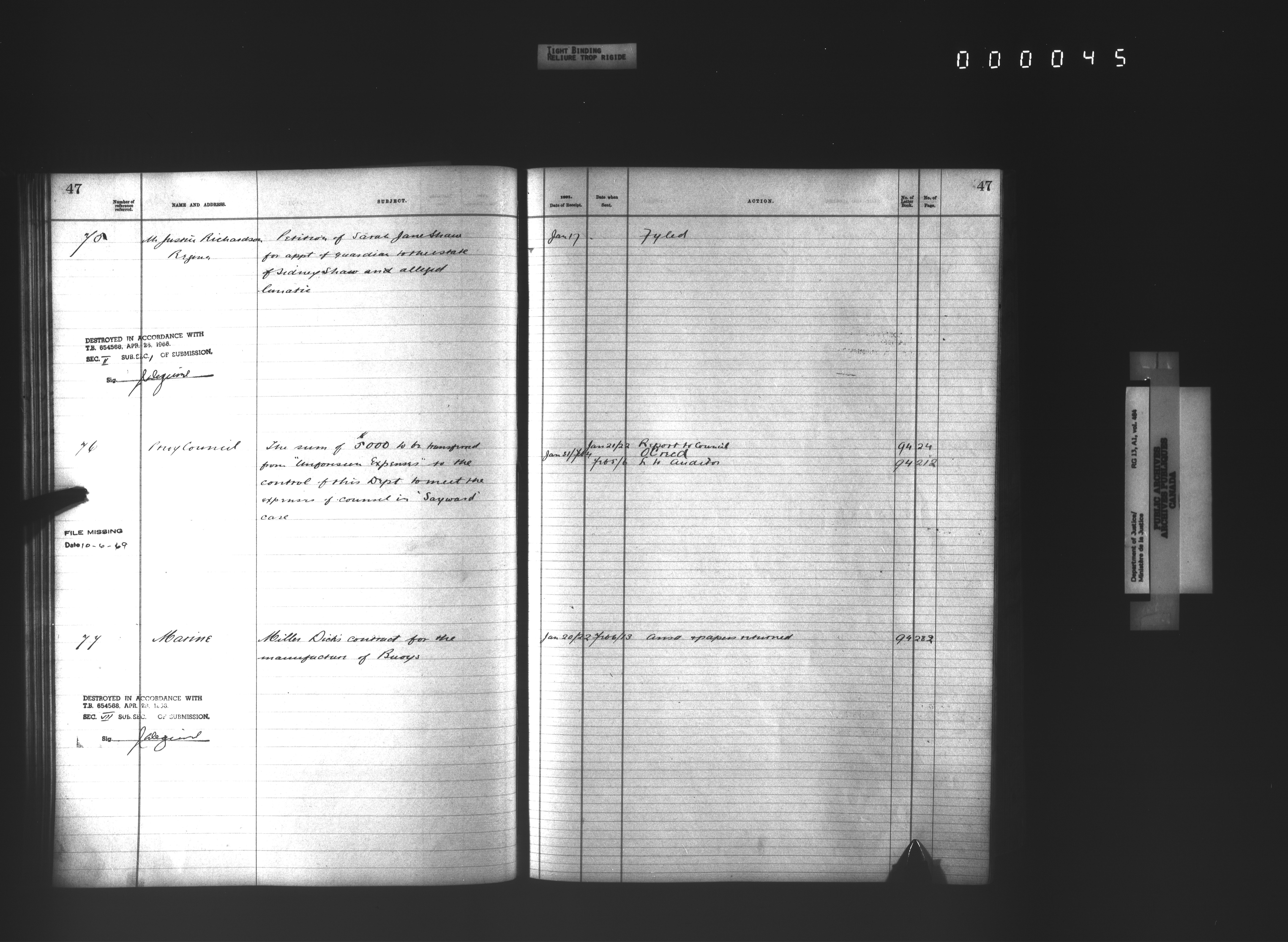 Department of Justice, Central Registry : Indexes and registers - 4339