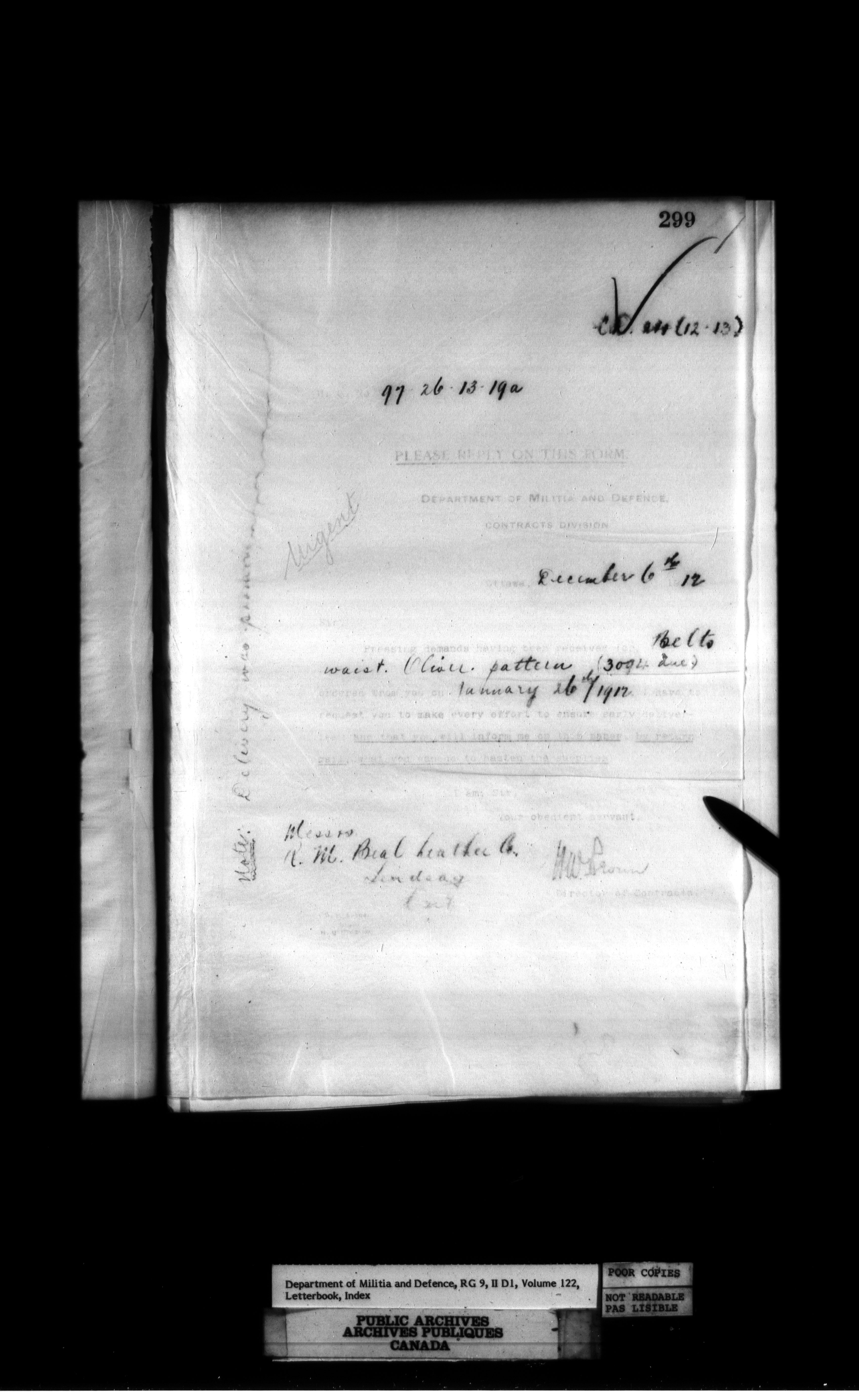 Department of Militia and Defence. Contracts Branch : Letterbooks, 1895-1912 : T-434