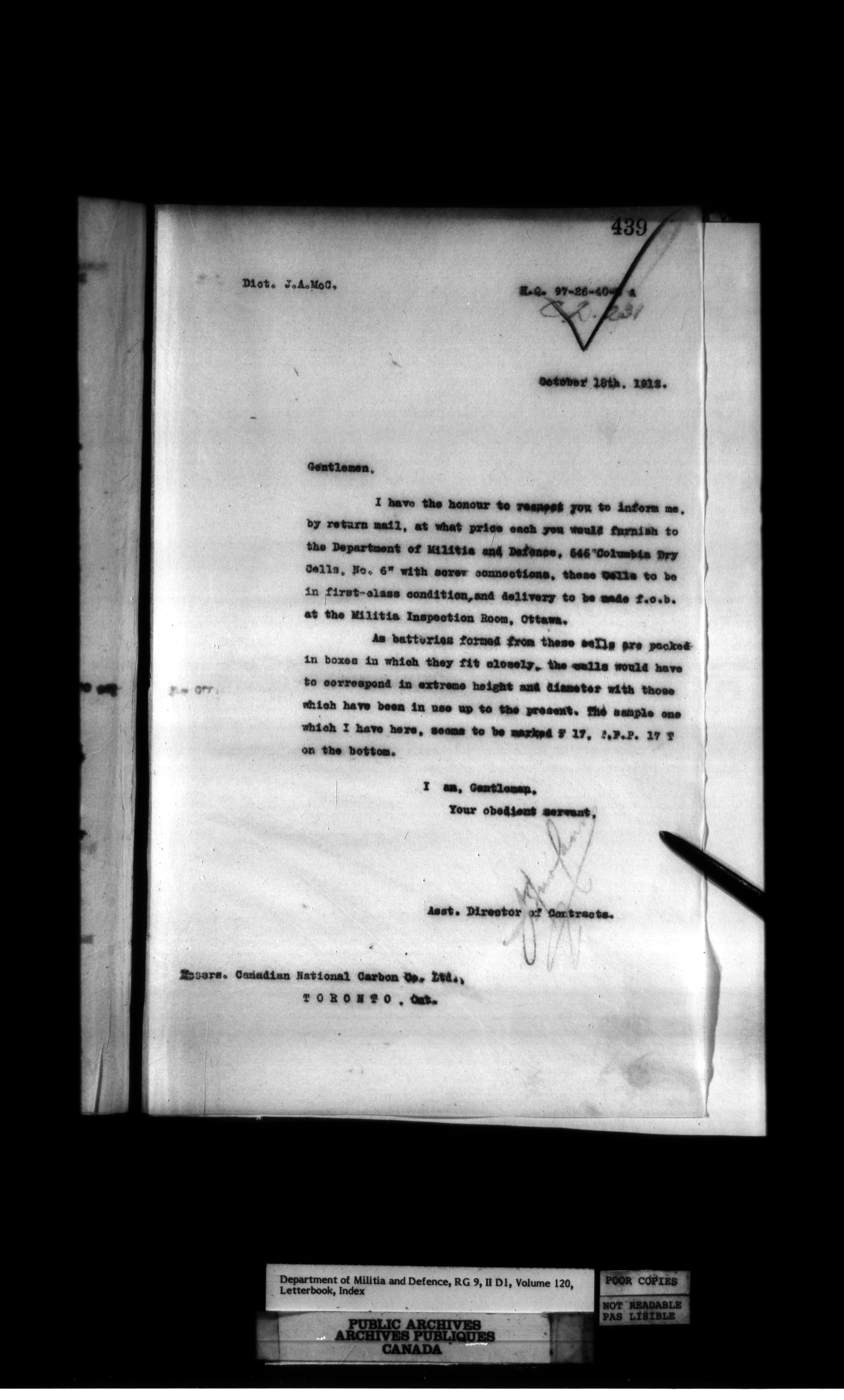 Department of Militia and Defence : Contracts Branch letterbooks, 1895-1912 - 434
