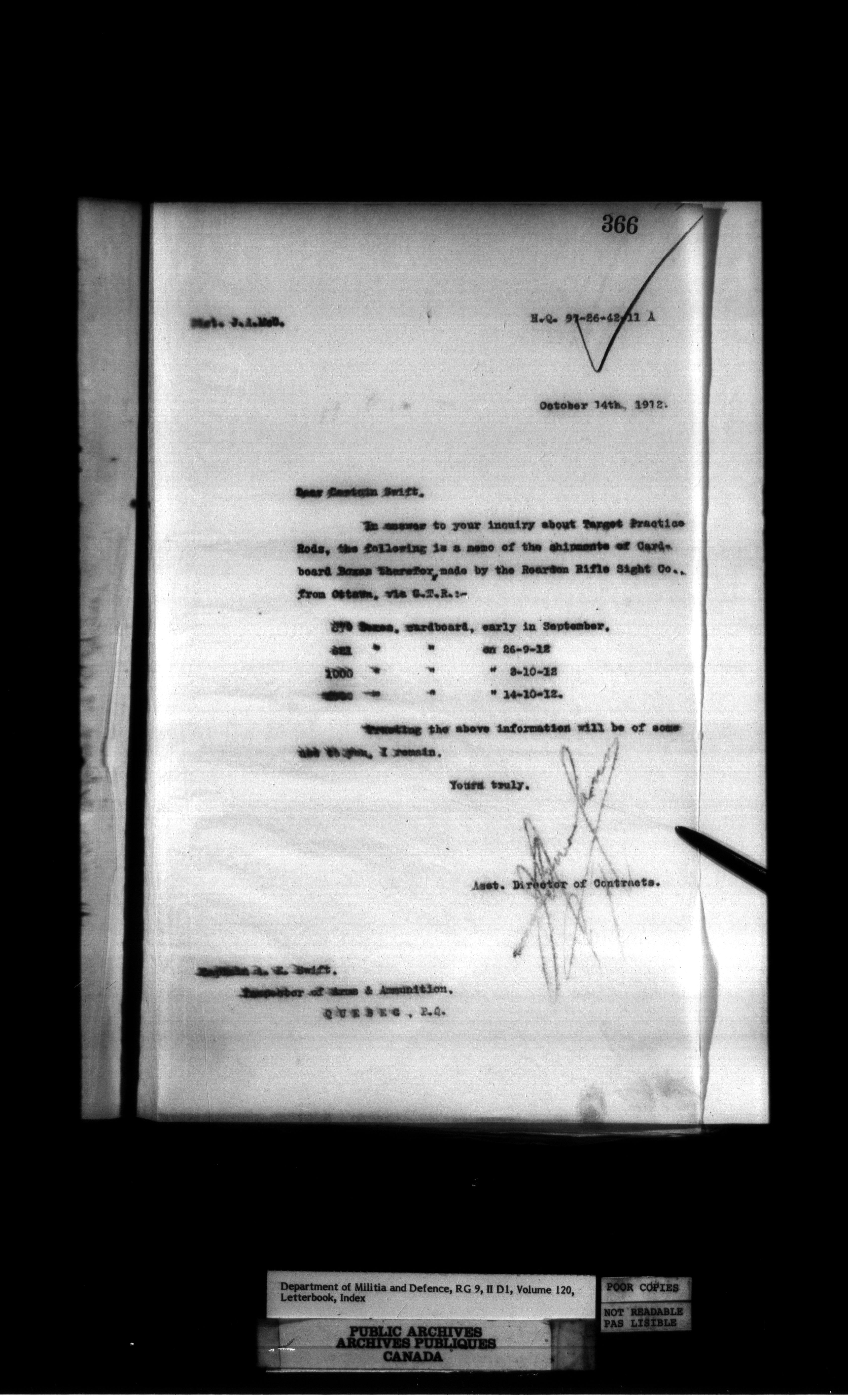 Department of Militia and Defence. Contracts Branch : Letterbooks, 1895-1912 : T-434