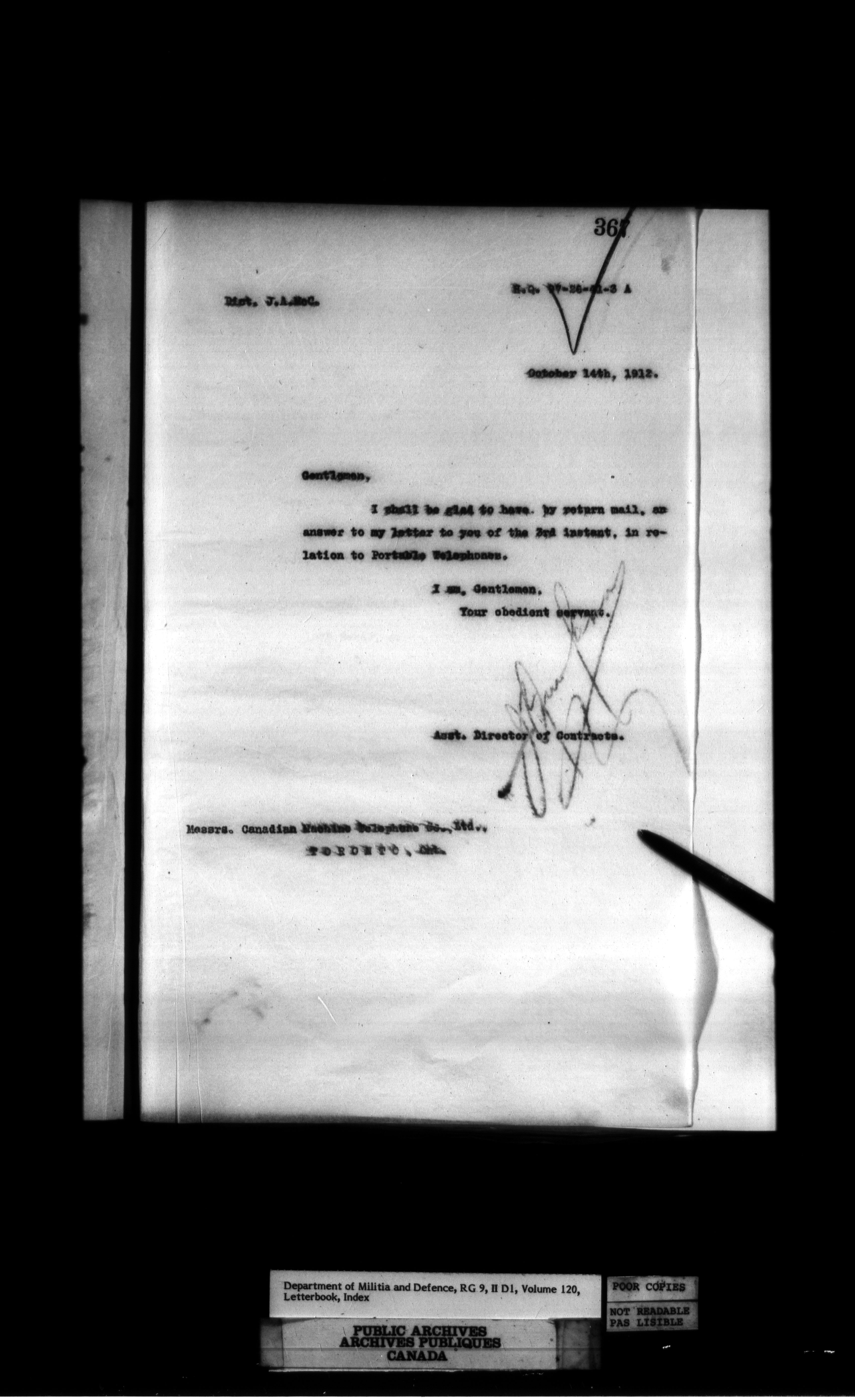 Department of Militia and Defence. Contracts Branch : Letterbooks, 1895-1912 : T-434