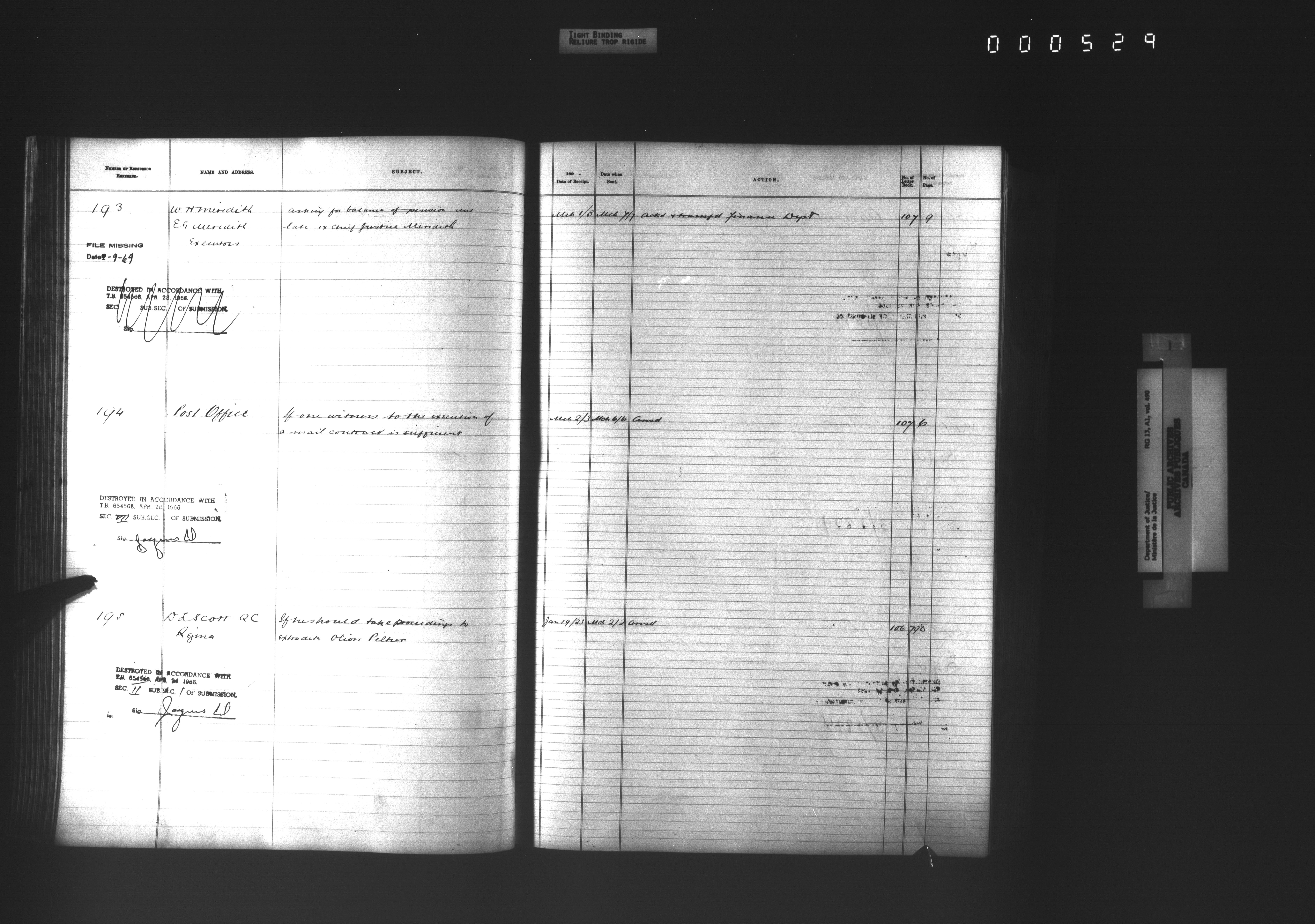 Department of Justice, Central Registry : Indexes and registers : T-4341