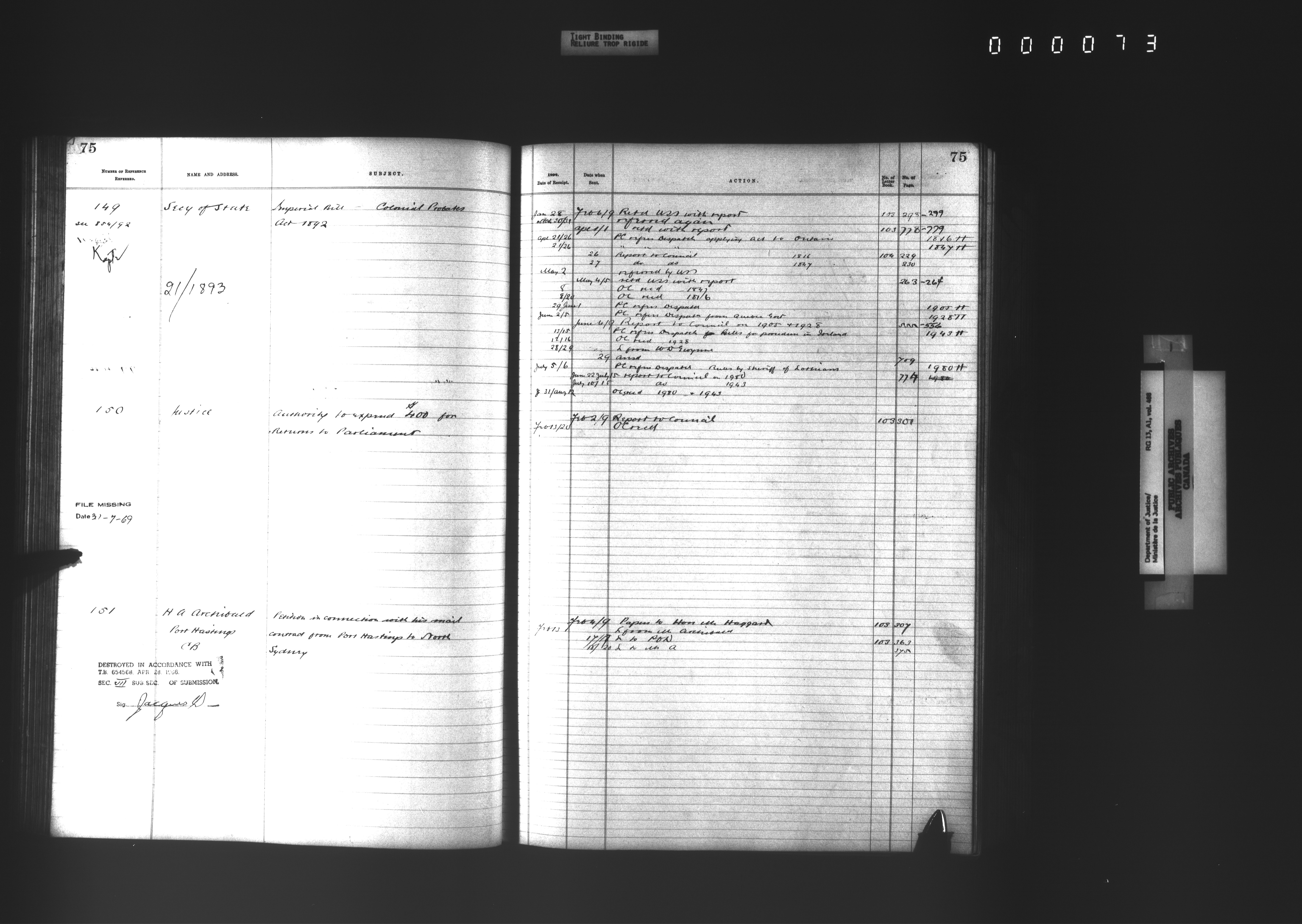 Department of Justice, Central Registry : Indexes and registers - 4341