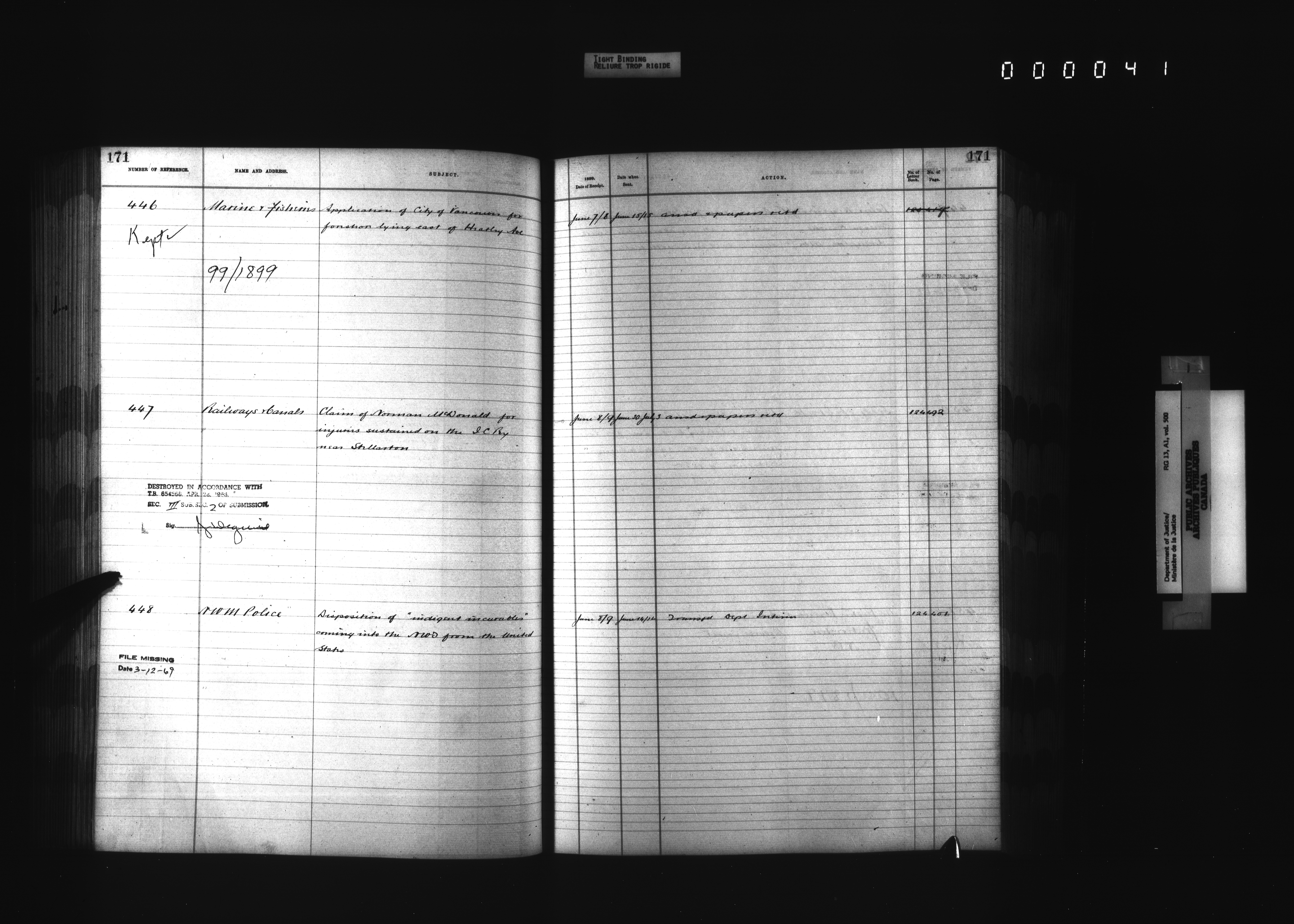 Department of Justice, Central Registry : Indexes and registers : T-4346