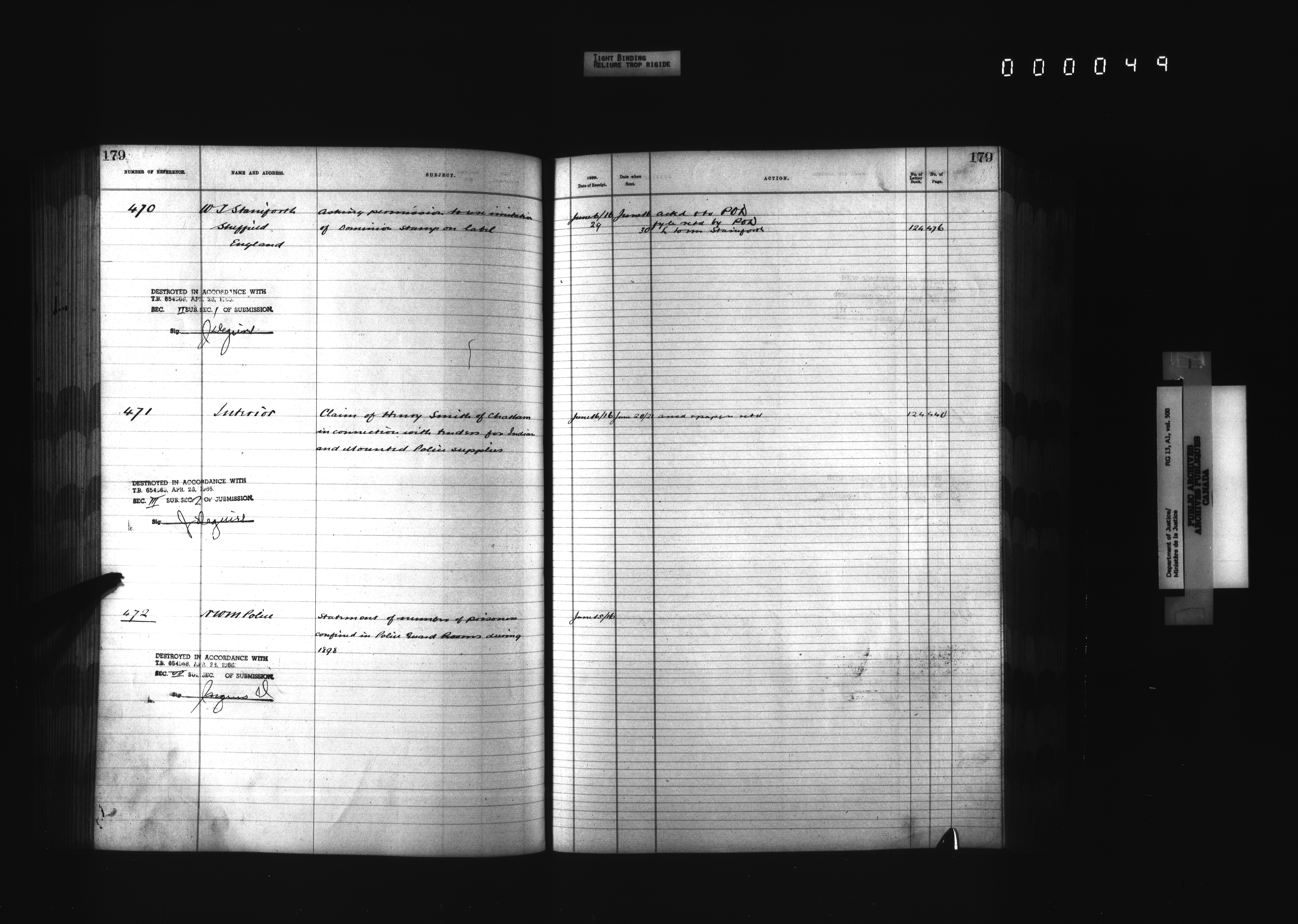 Department of Justice, Central Registry : Indexes and registers : T-4346
