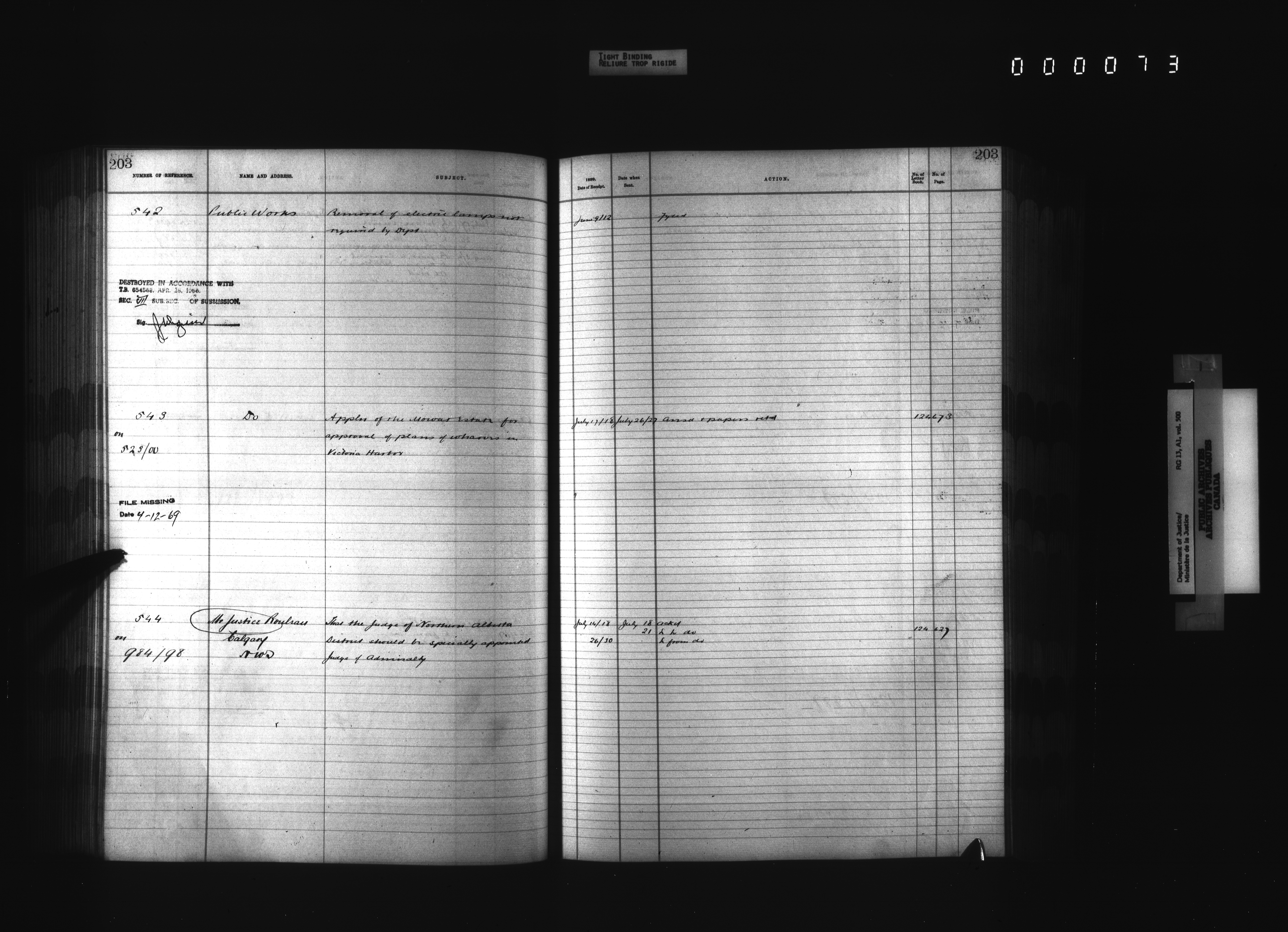 Department of Justice, Central Registry : Indexes and registers - 4346