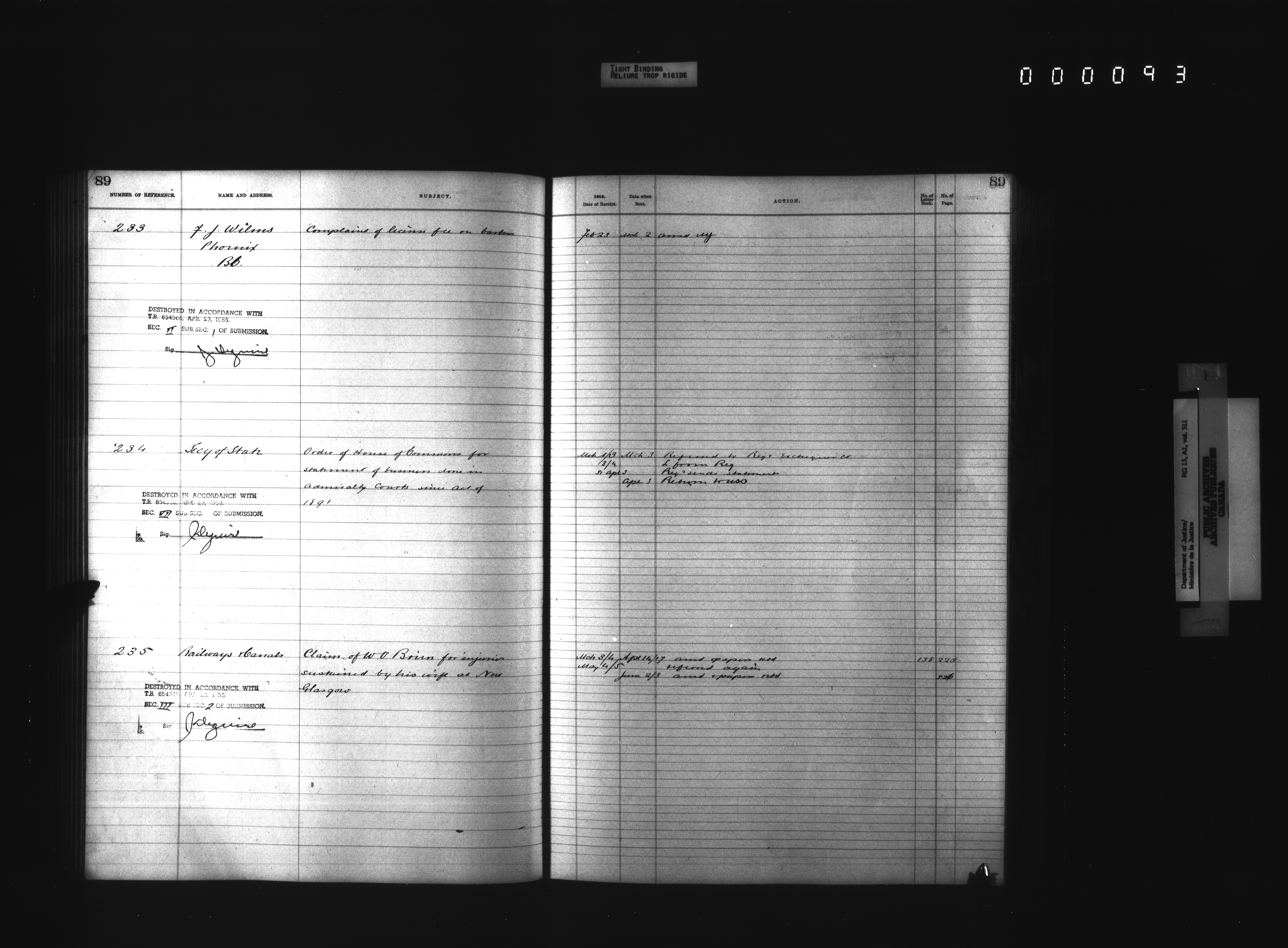 Department of Justice, Central Registry : Indexes and registers - 4350