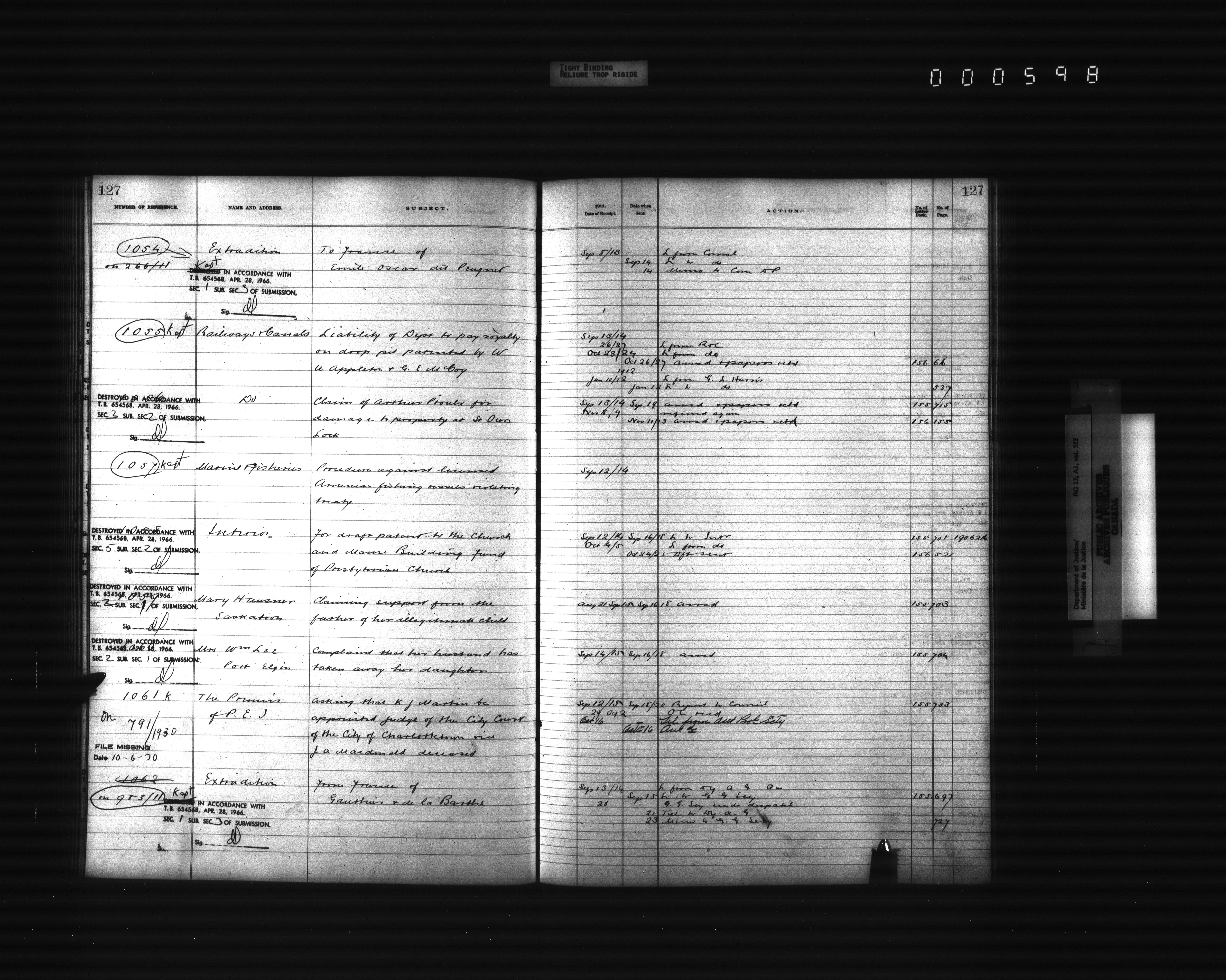 Department of Justice, Central Registry : Indexes and registers - 4352