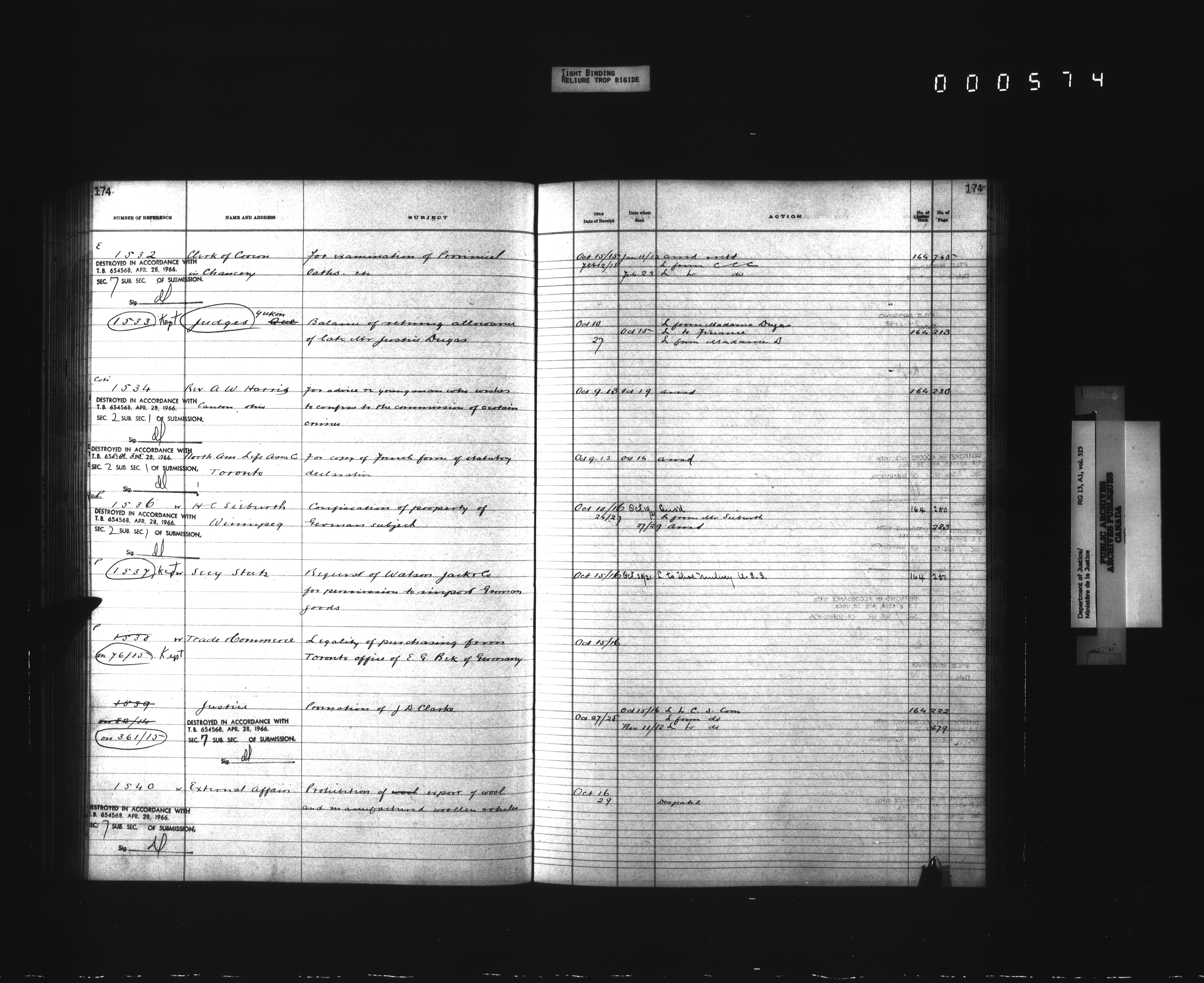 Department of Justice, Central Registry : Indexes and registers : T-4353