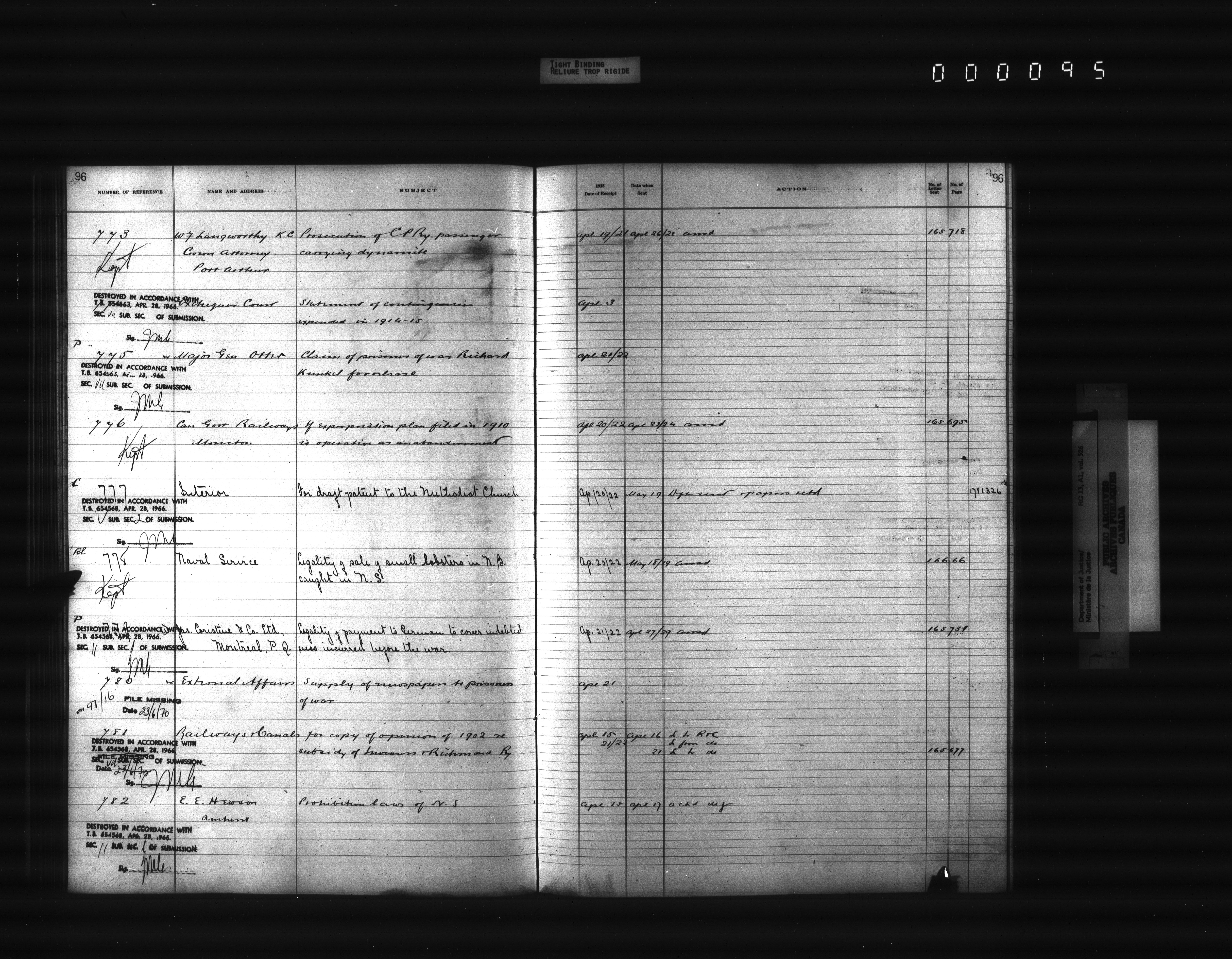 Department of Justice, Central Registry : Indexes and registers - 4354