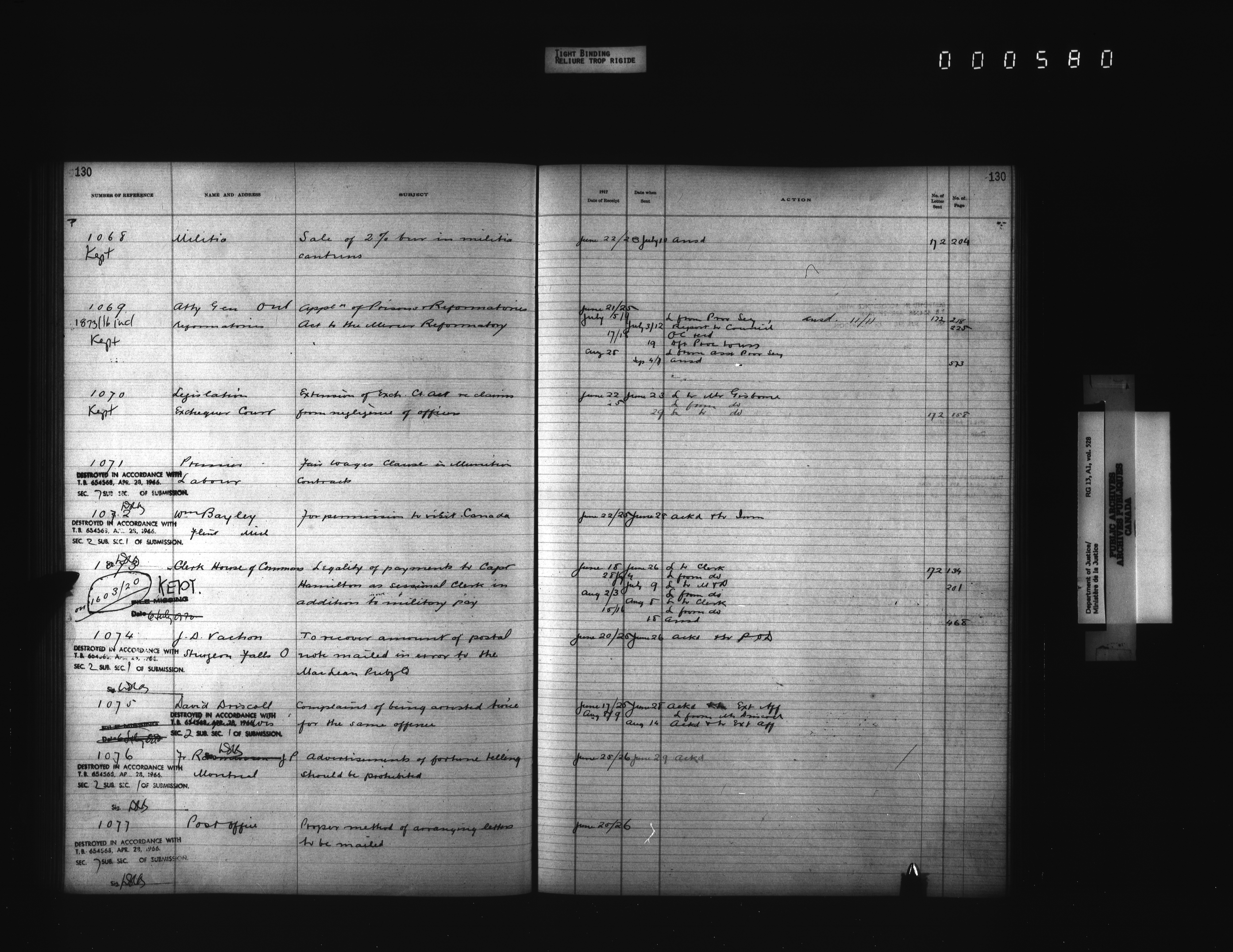 Department of Justice, Central Registry : Indexes and registers - 4354