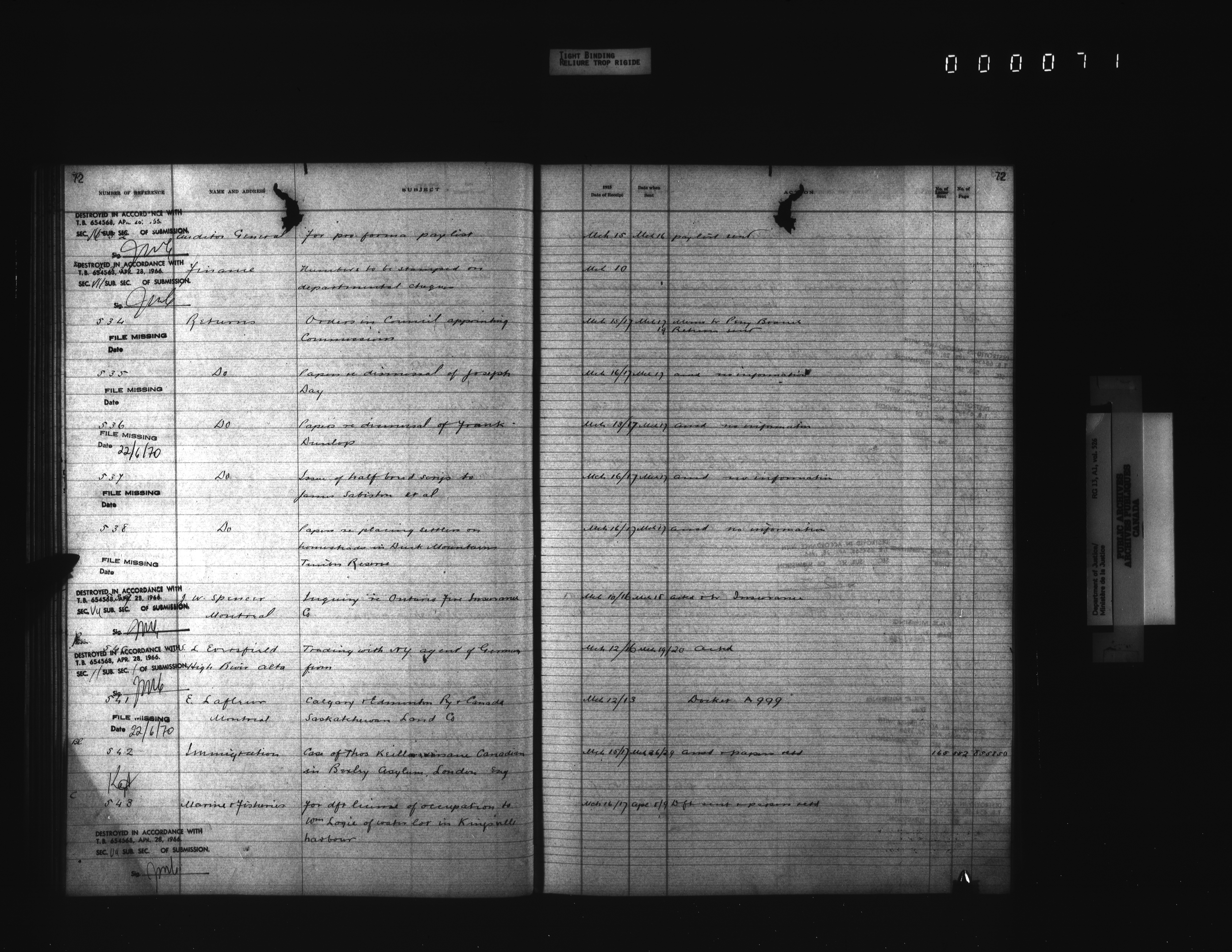 Department of Justice, Central Registry : Indexes and registers - 4354