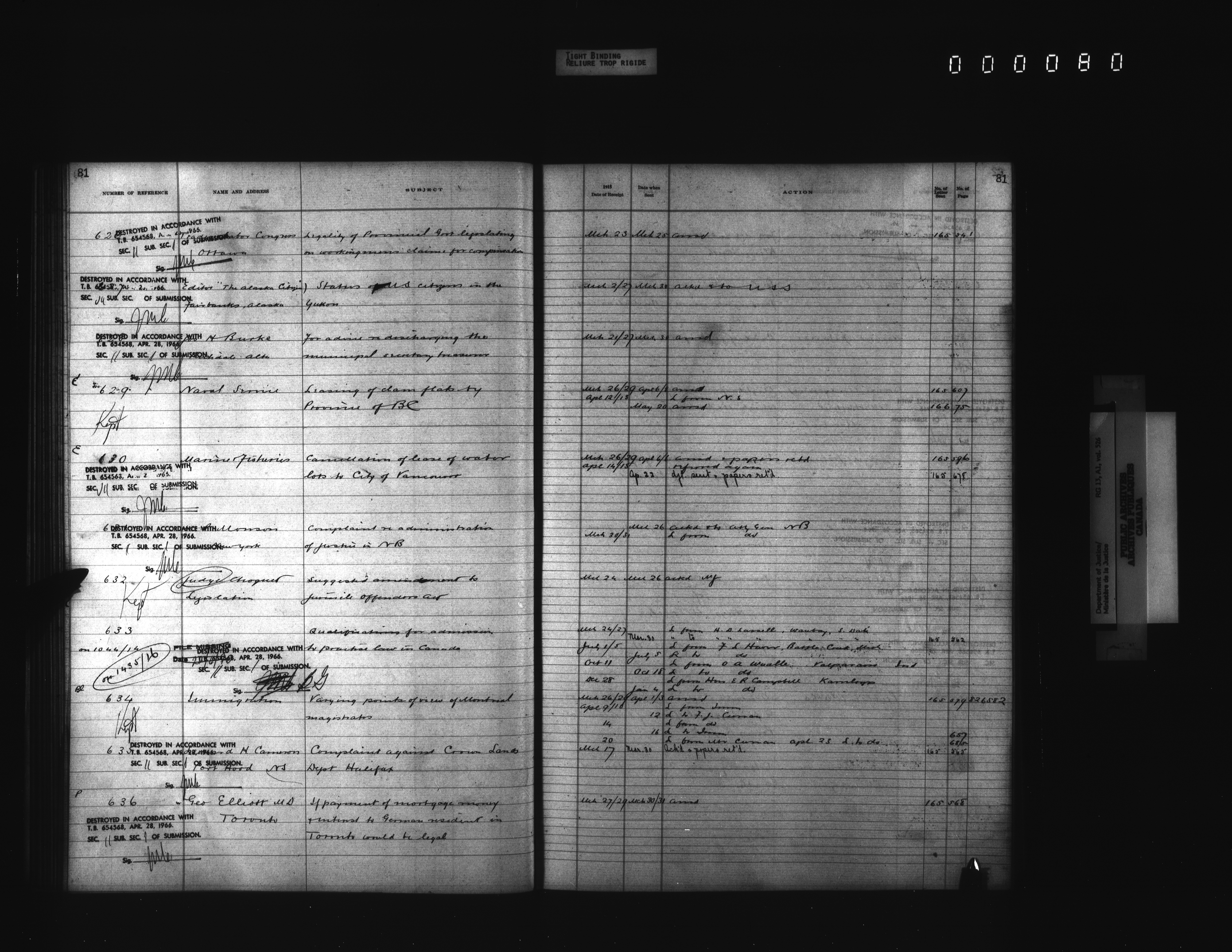 Department of Justice, Central Registry : Indexes and registers - 4354