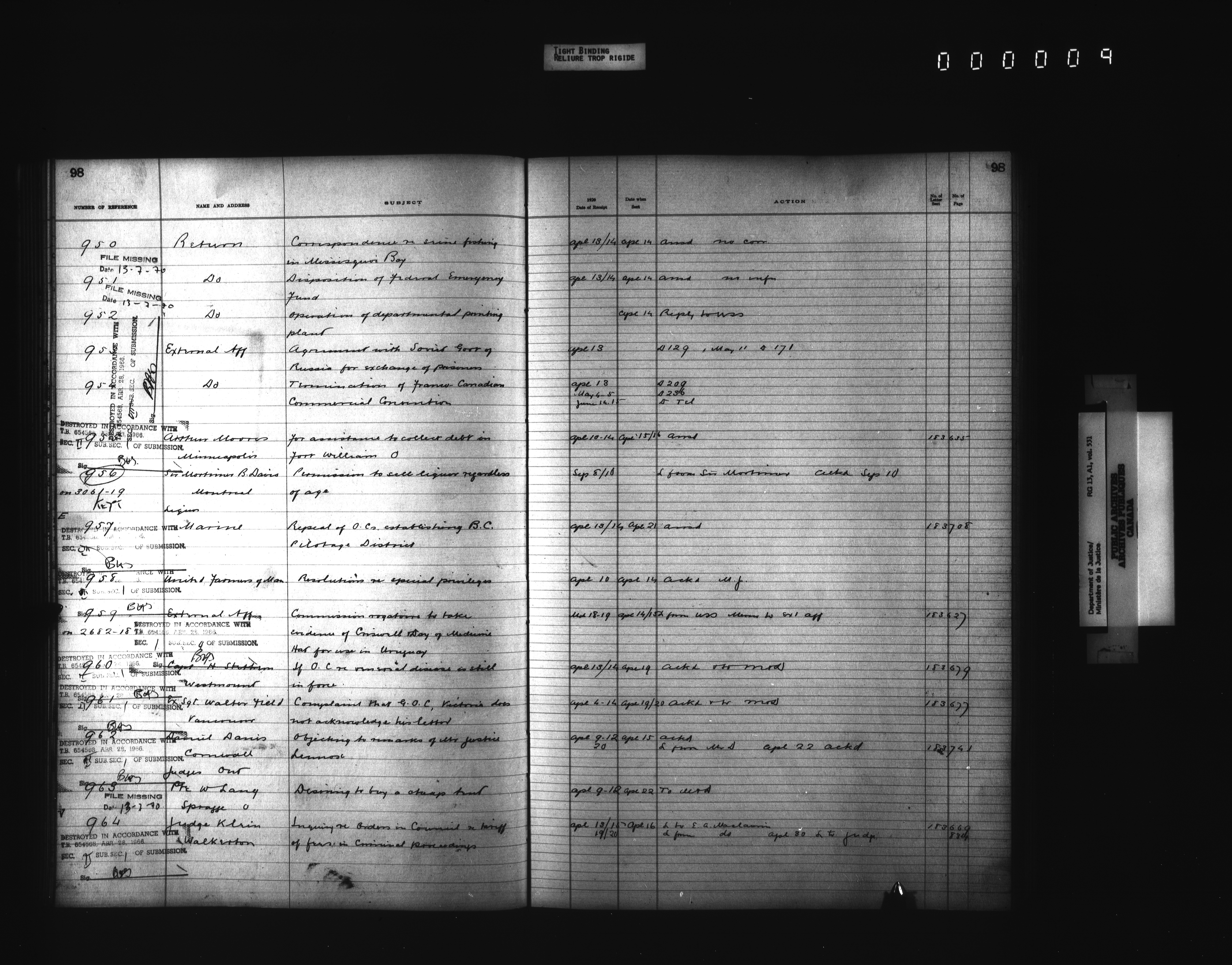 Department of Justice, Central Registry : Indexes and registers - 4356