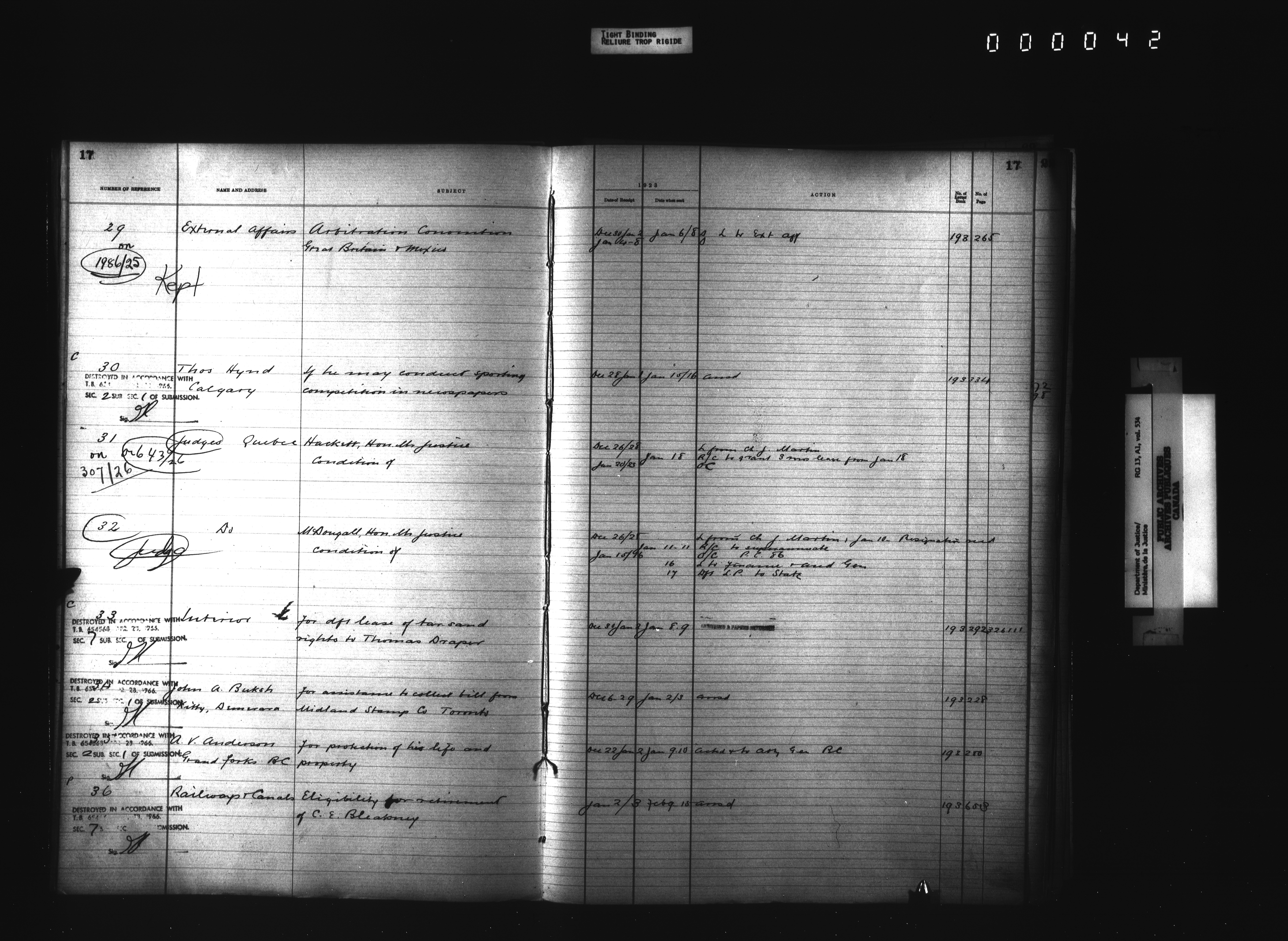 Department of Justice, Central Registry : Indexes and registers - 4357