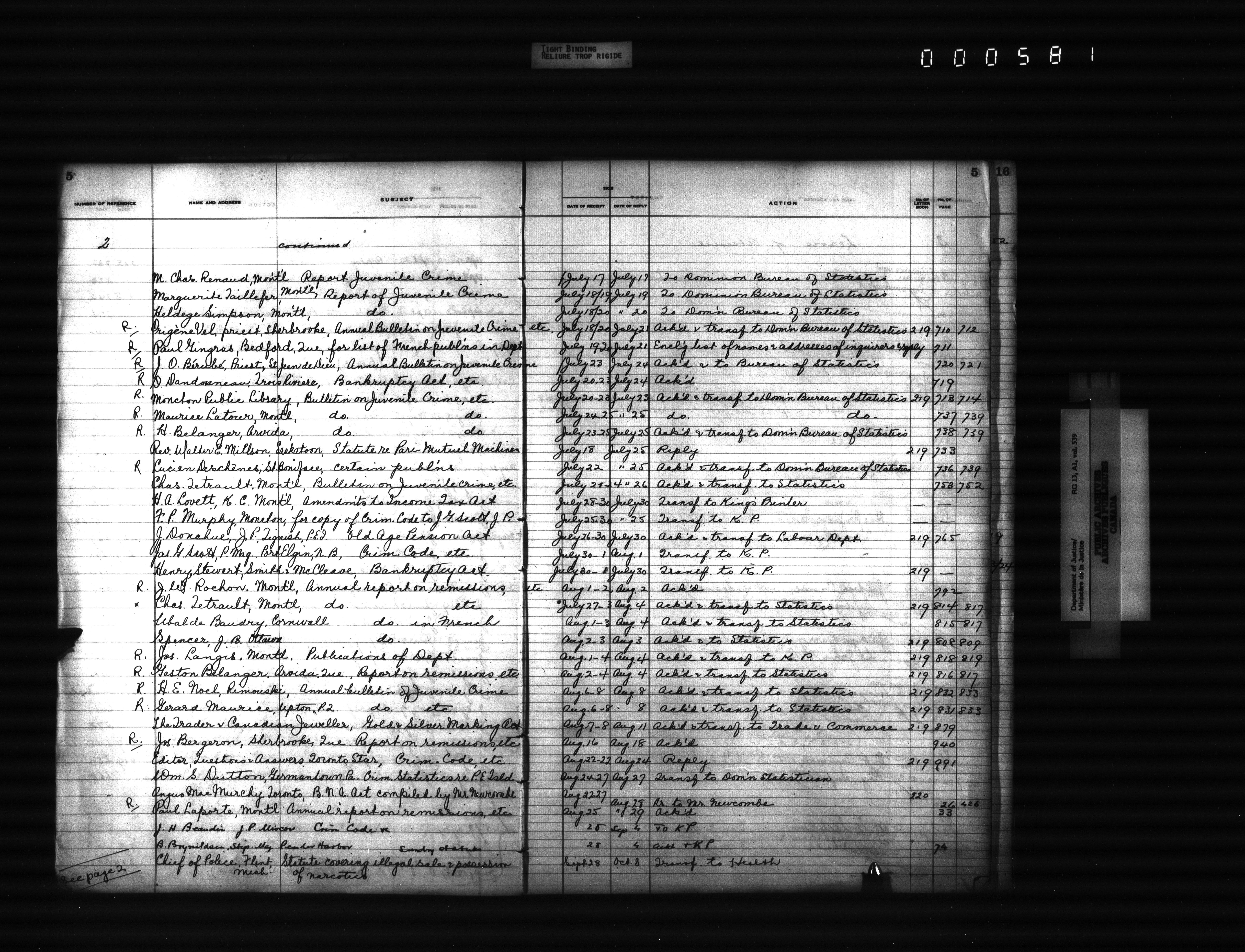 Department of Justice, Central Registry : Indexes and registers - 4358