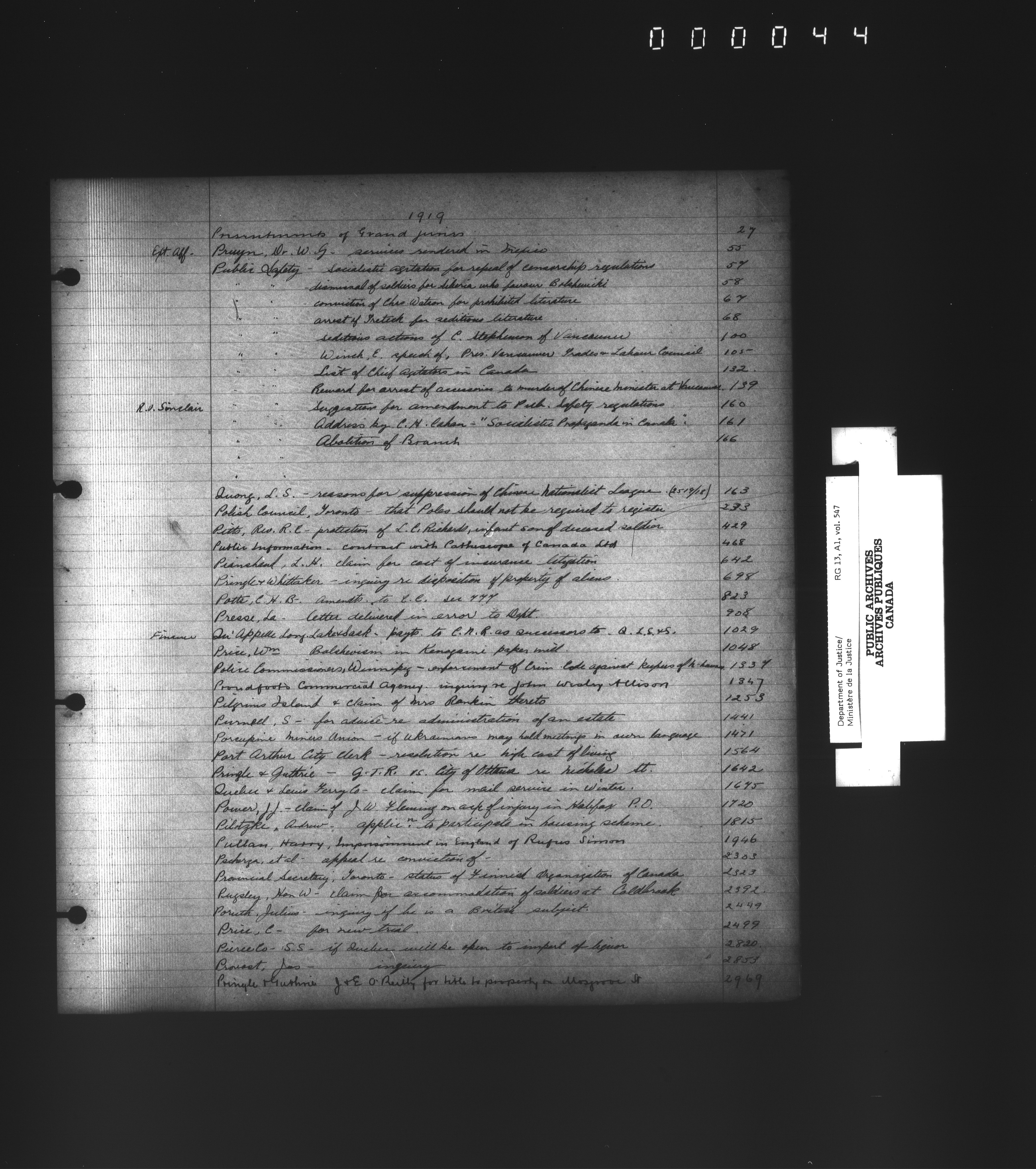 Department of Justice, Central Registry : Indexes and registers - 4362