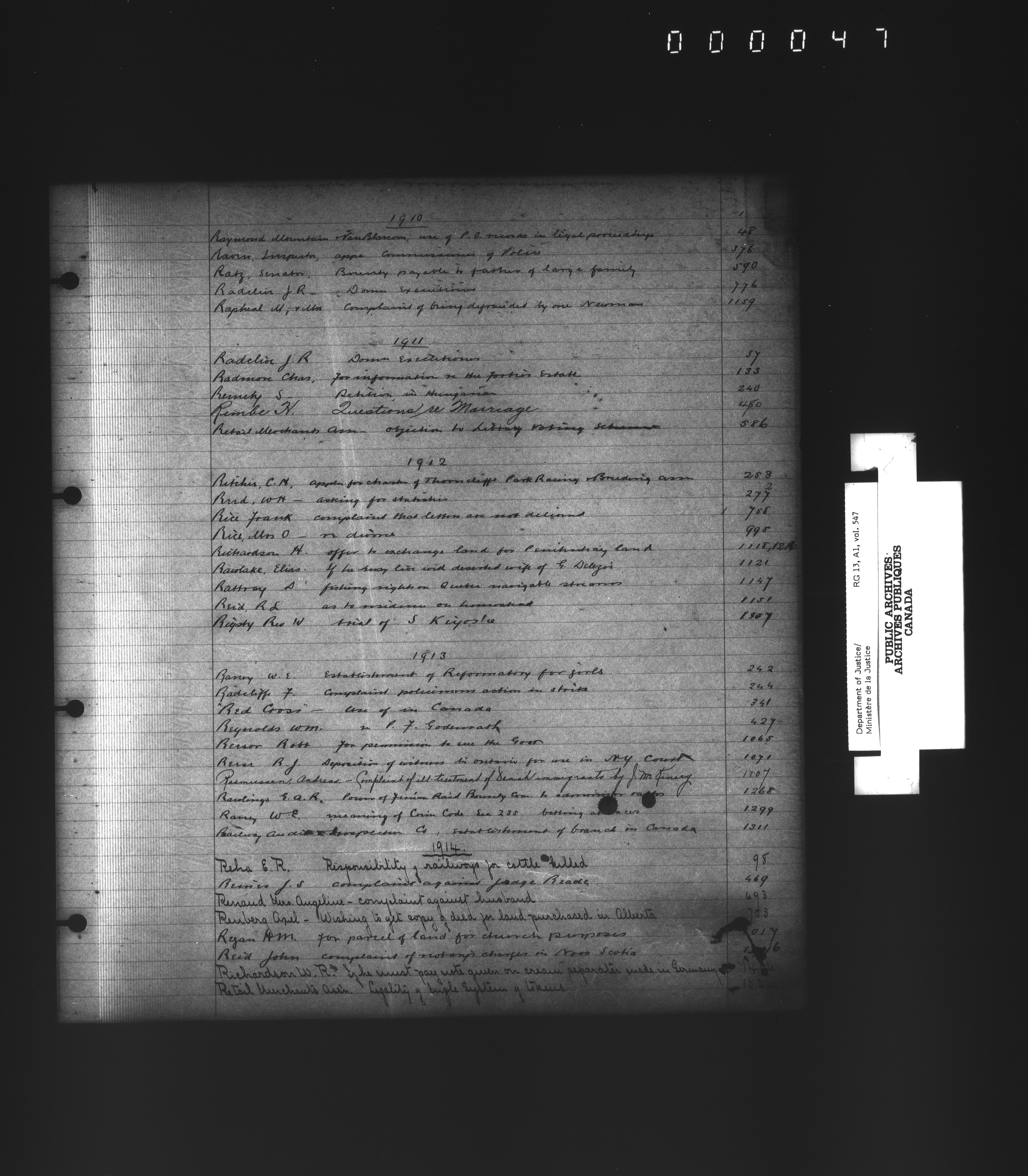 Department of Justice, Central Registry : Indexes and registers - 4362