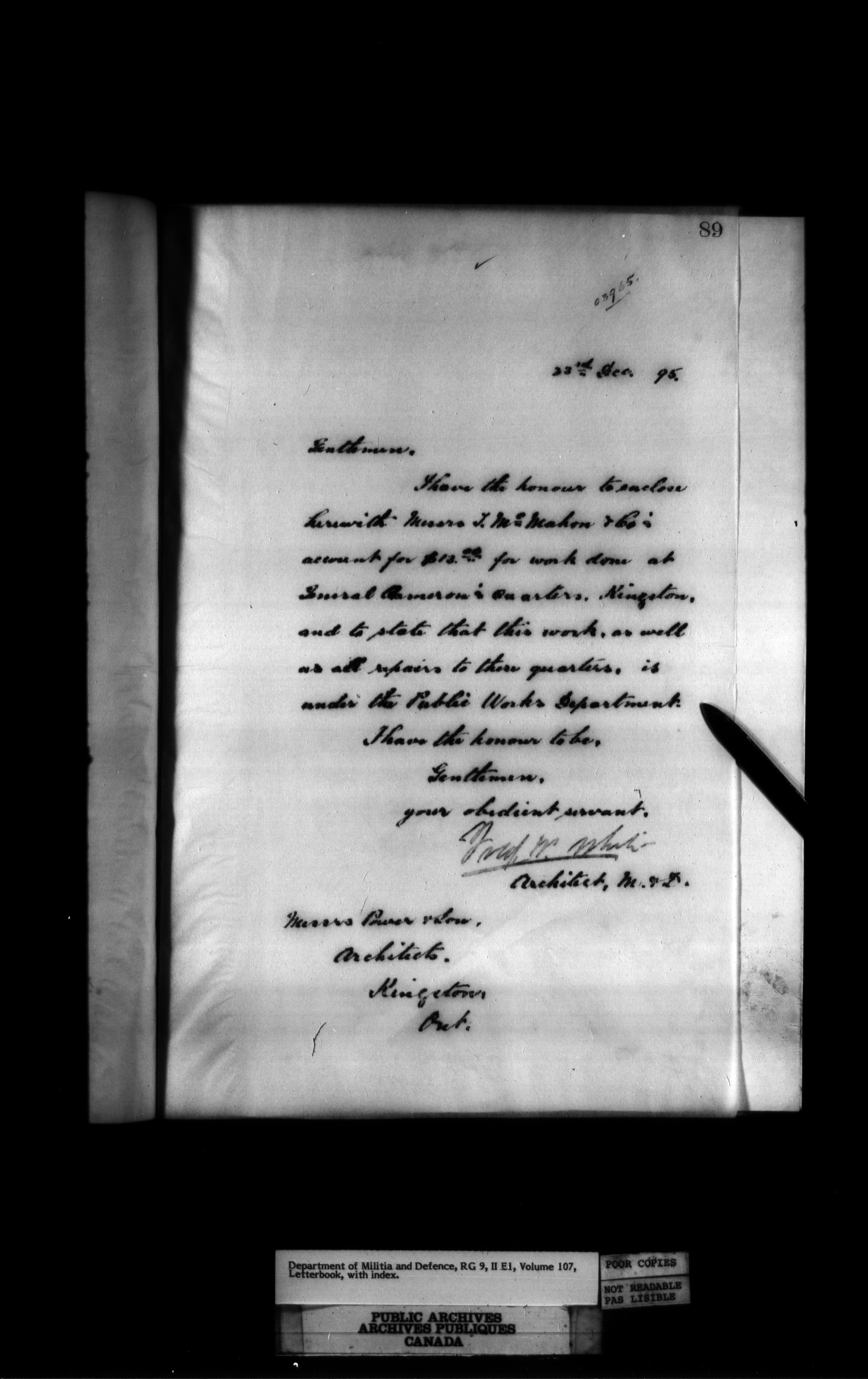 Department of Militia and Defence : Engineer Branch correspondence and letterbooks, 1880-1903 - 438