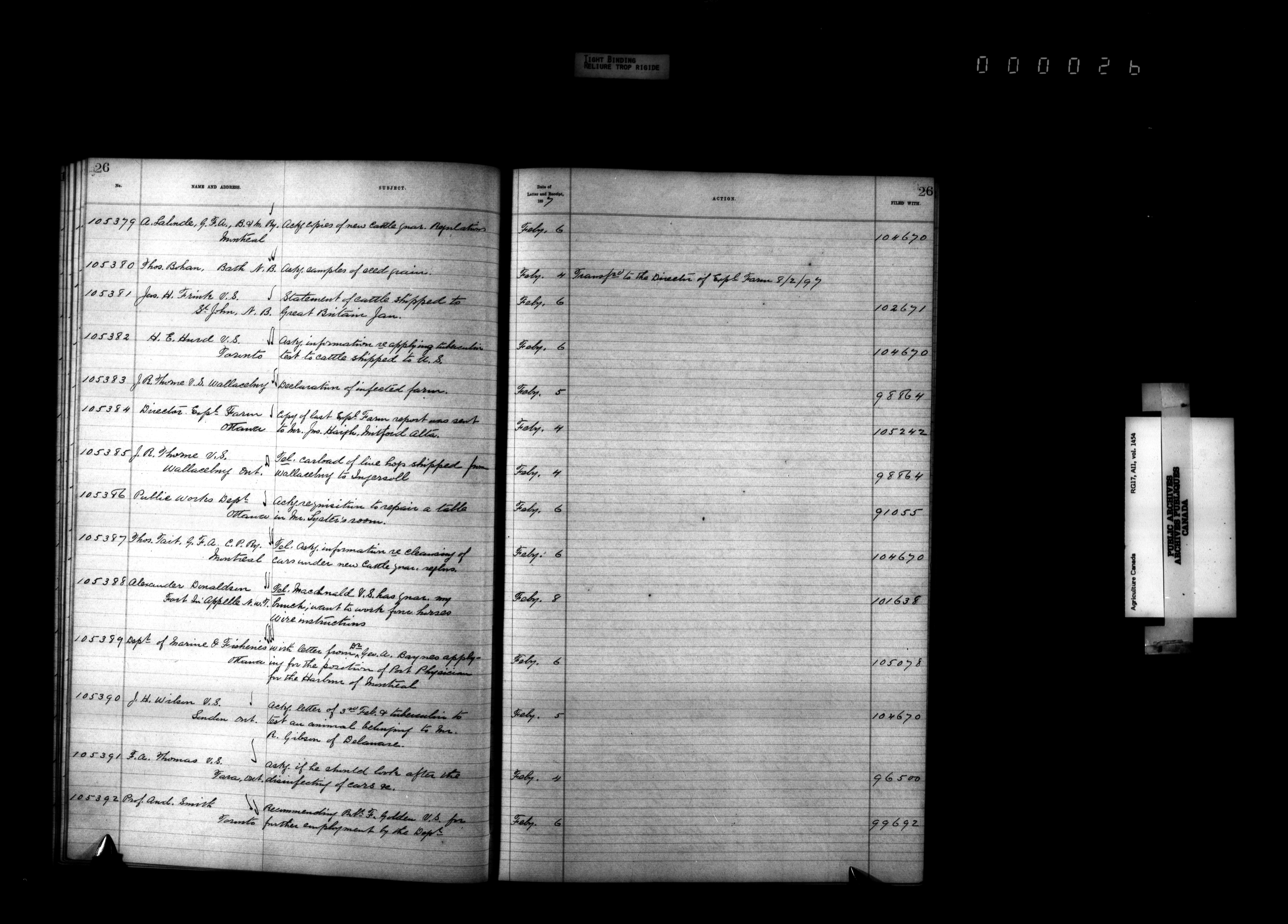 Department of Agriculture : Docket and letterbook registry system, general correspondence : T-4383