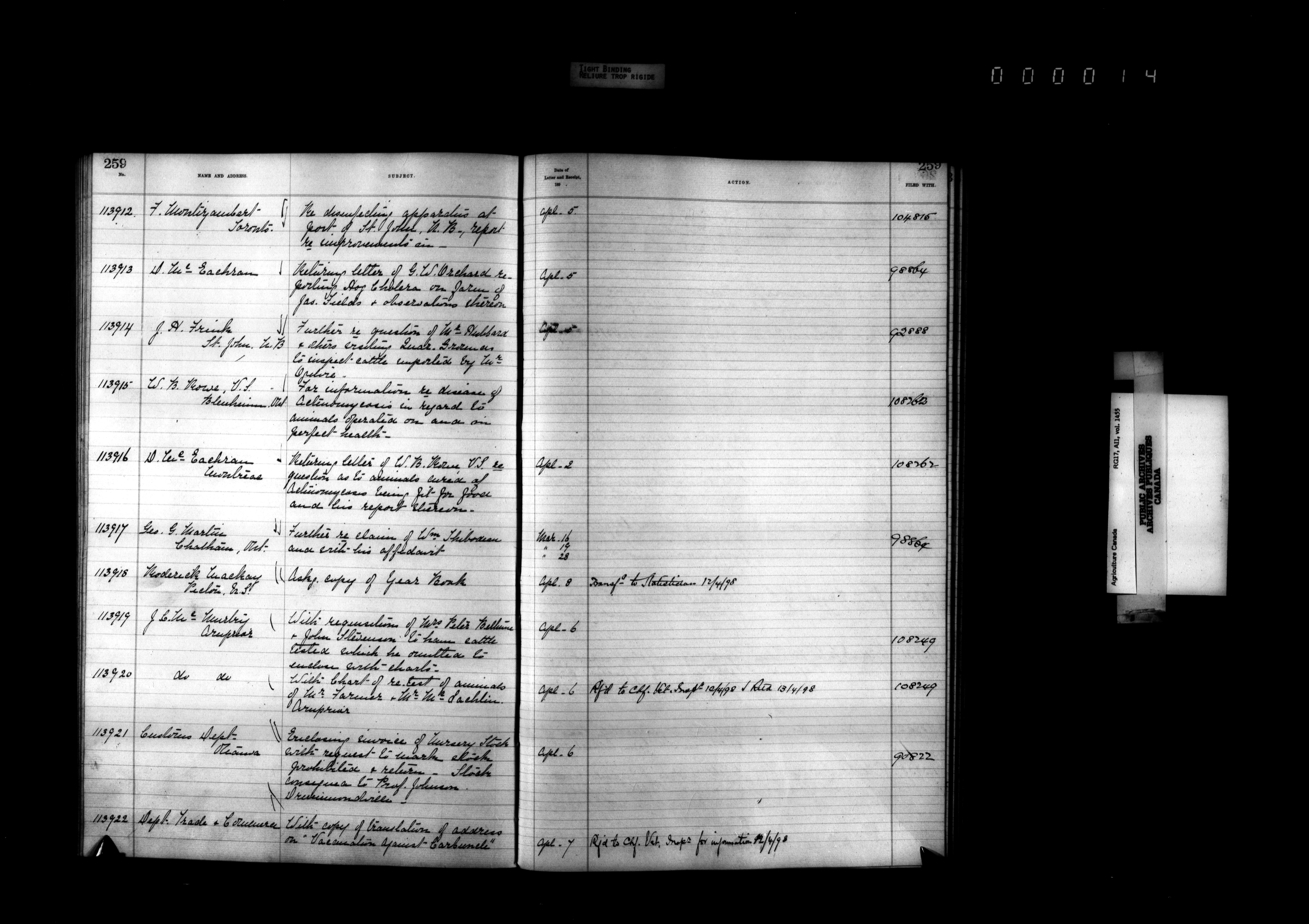 Department of Agriculture : Docket and letterbook registry system, general correspondence - 4384