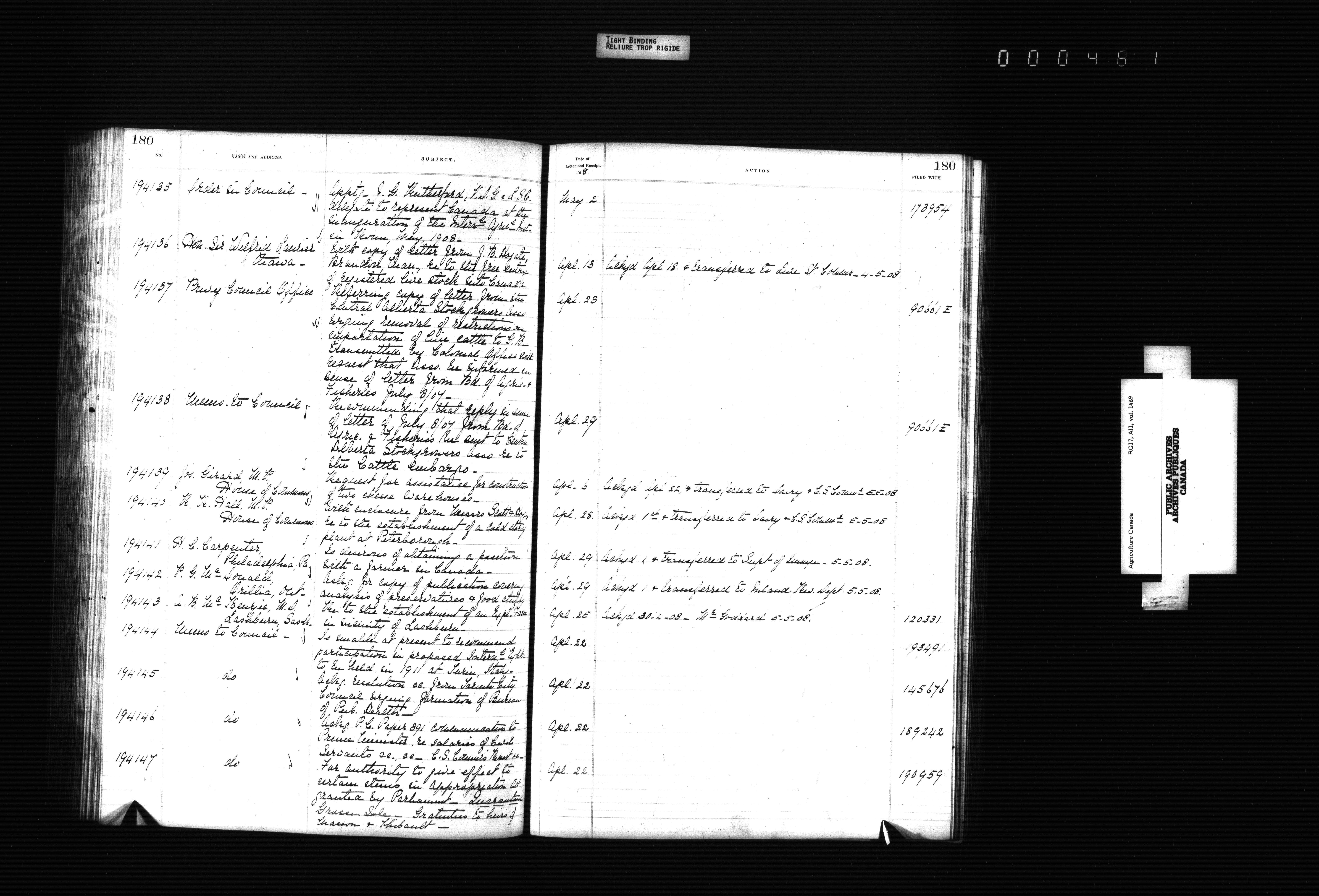 Department of Agriculture : Docket and letterbook registry system, general correspondence - 4391