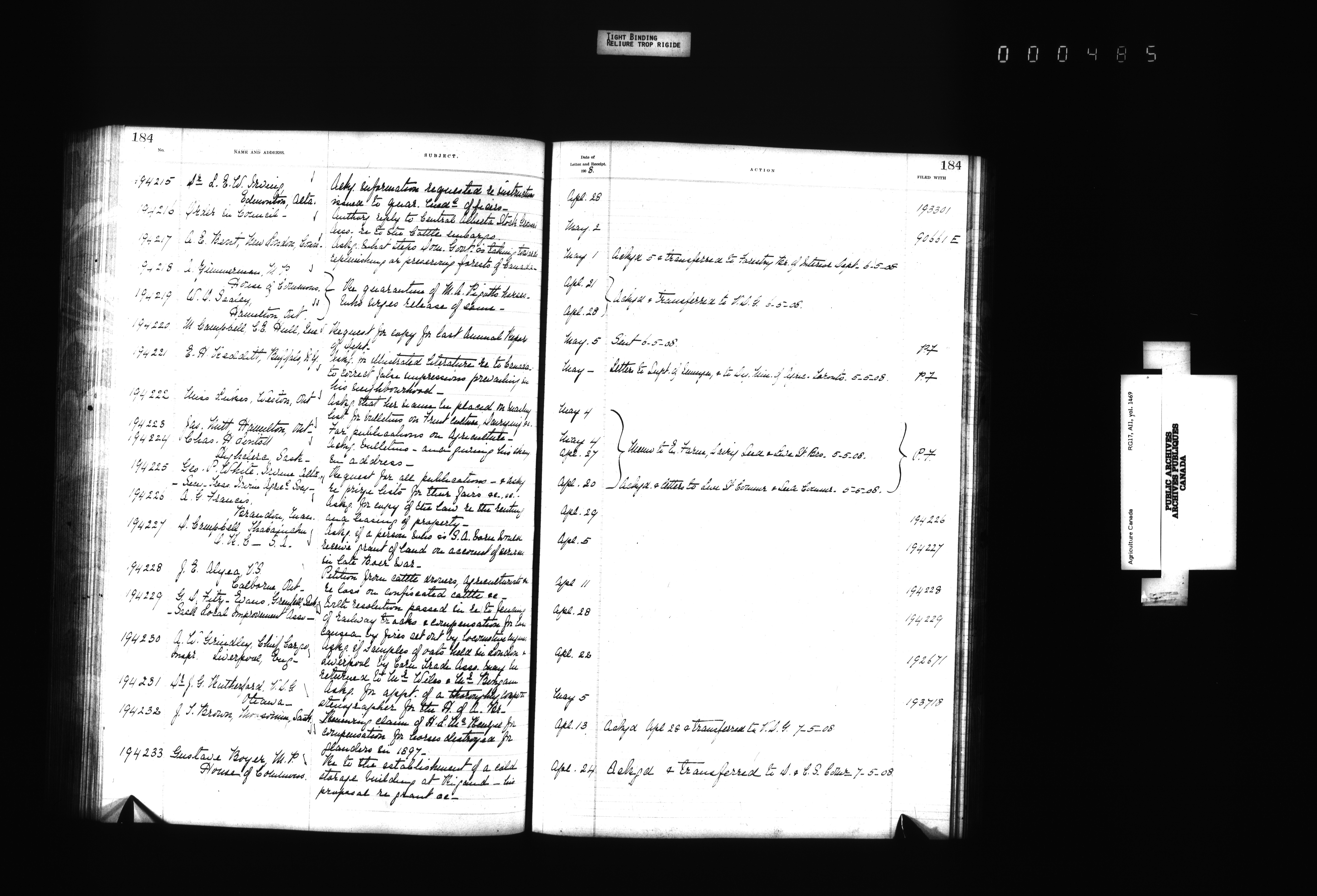 Department of Agriculture : Docket and letterbook registry system, general correspondence - 4391