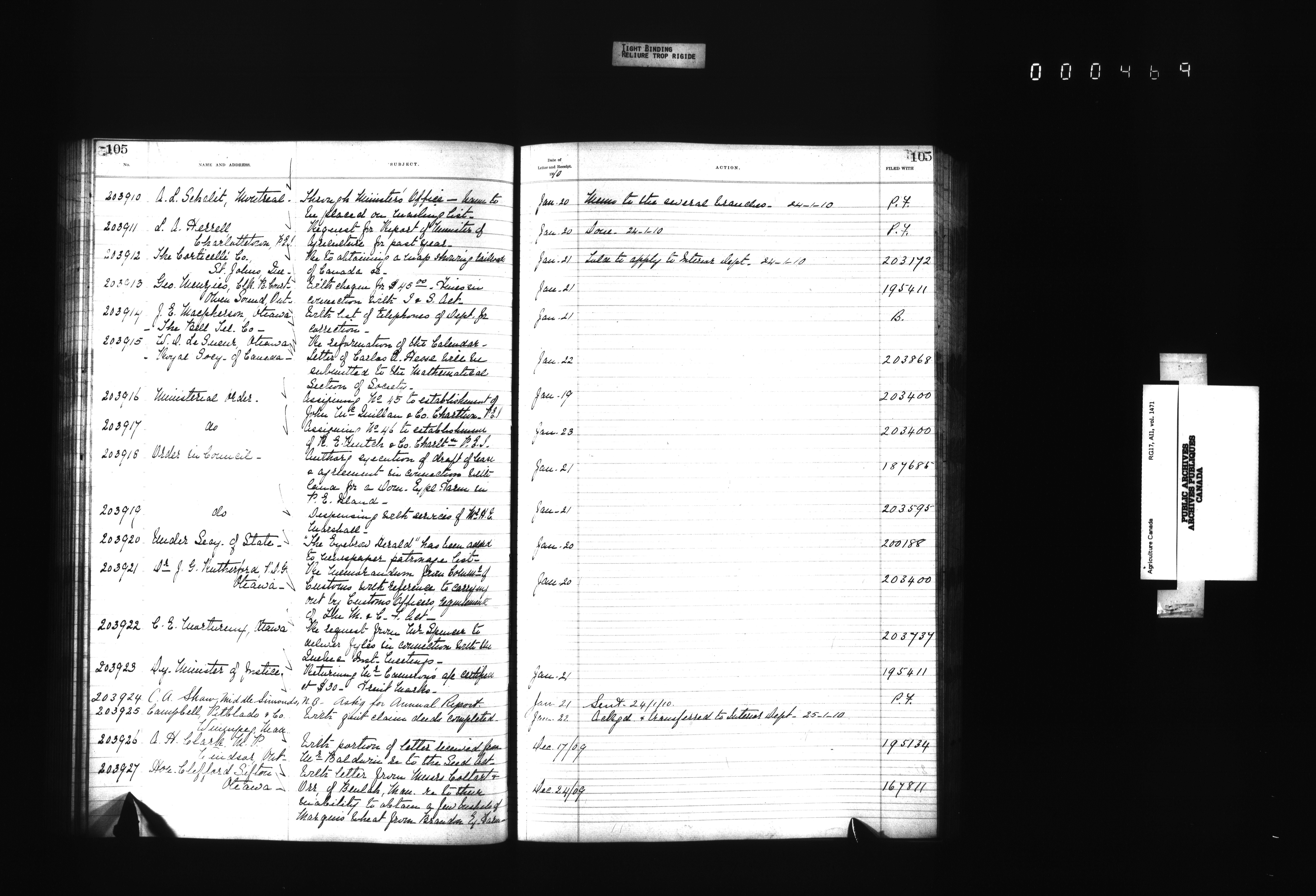 Department of Agriculture : Docket and letterbook registry system, general correspondence - 4392
