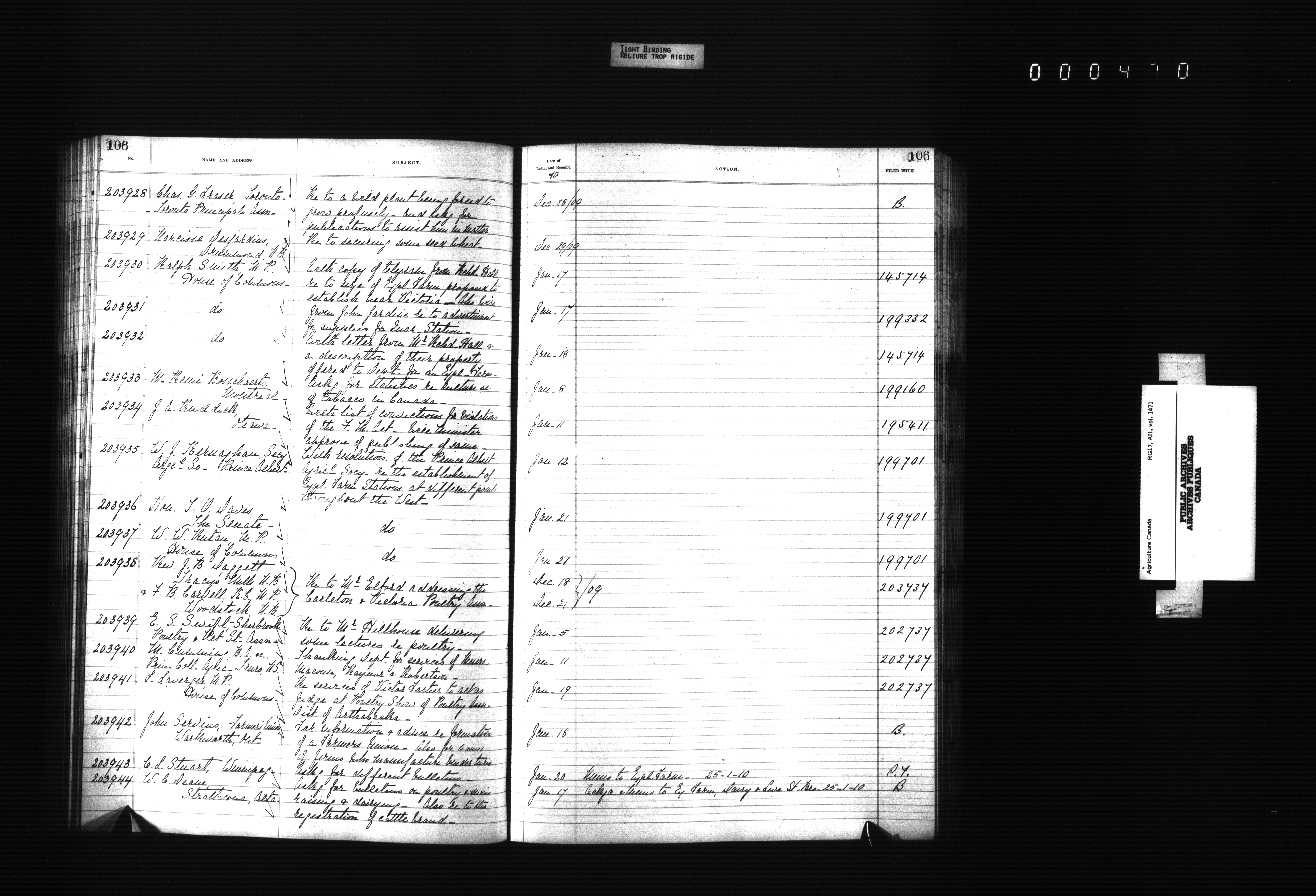 Department of Agriculture : Docket and letterbook registry system, general correspondence - 4392