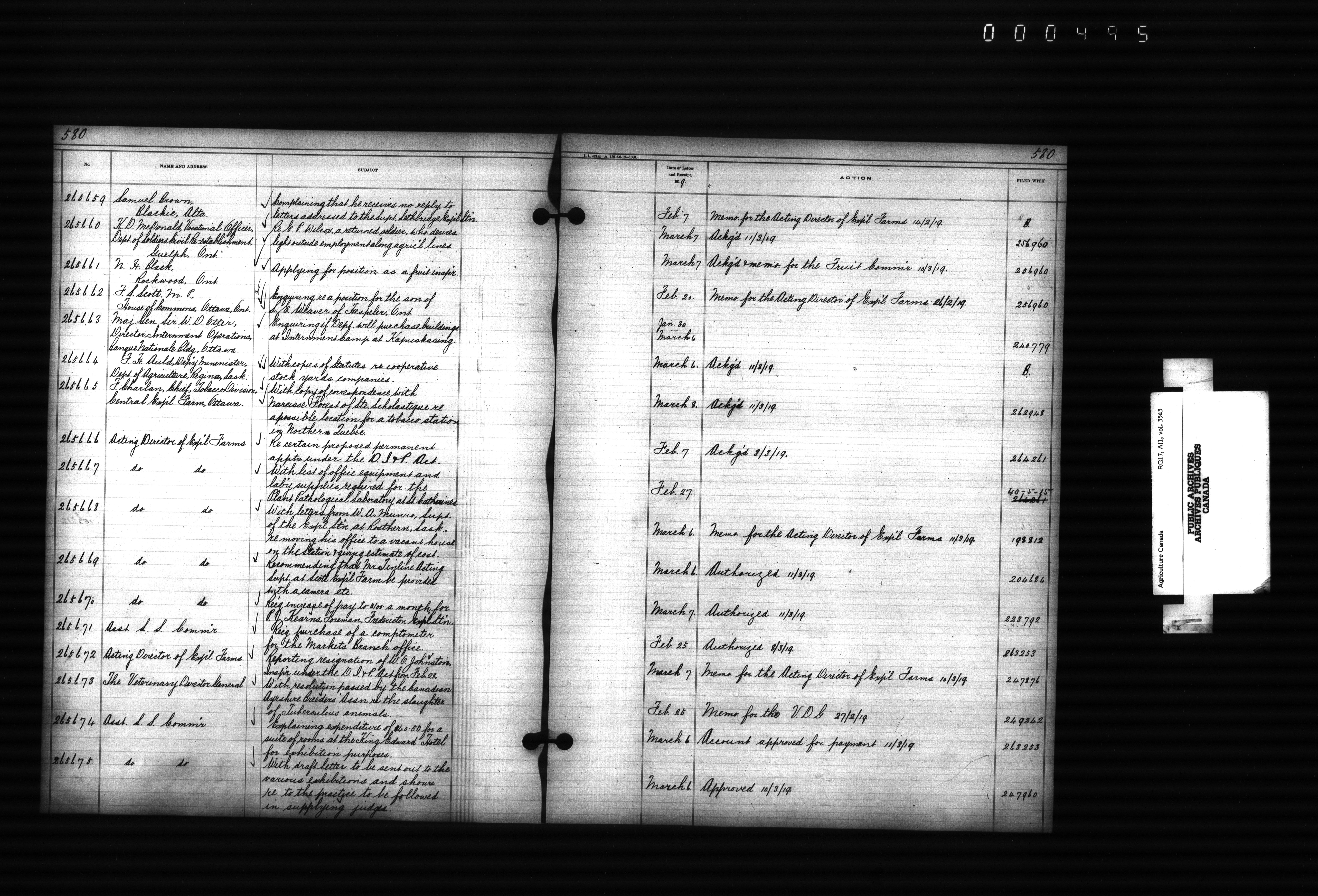 Department of Agriculture : Docket and letterbook registry system, general correspondence - 4399