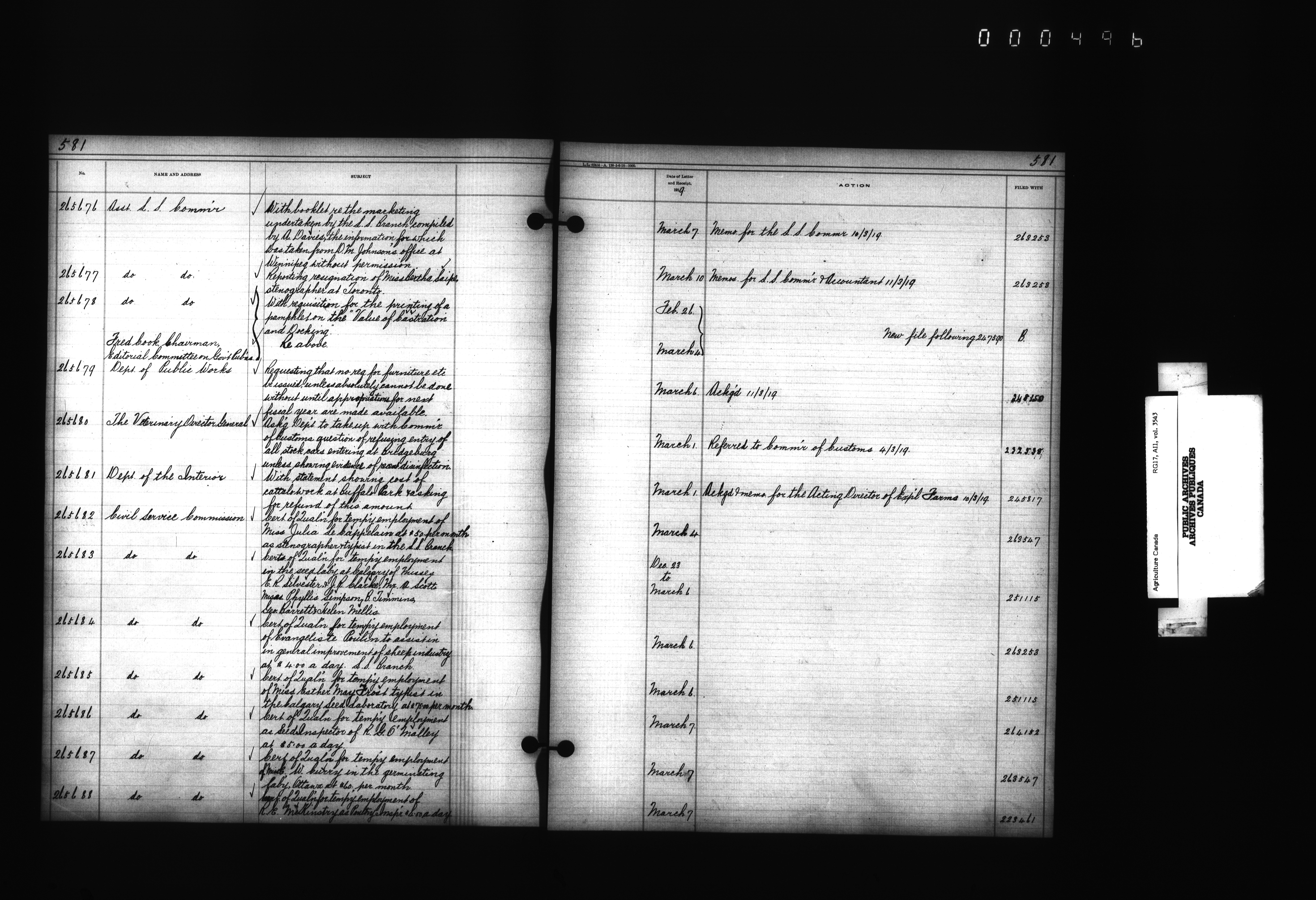 Department of Agriculture : Docket and letterbook registry system, general correspondence - 4399