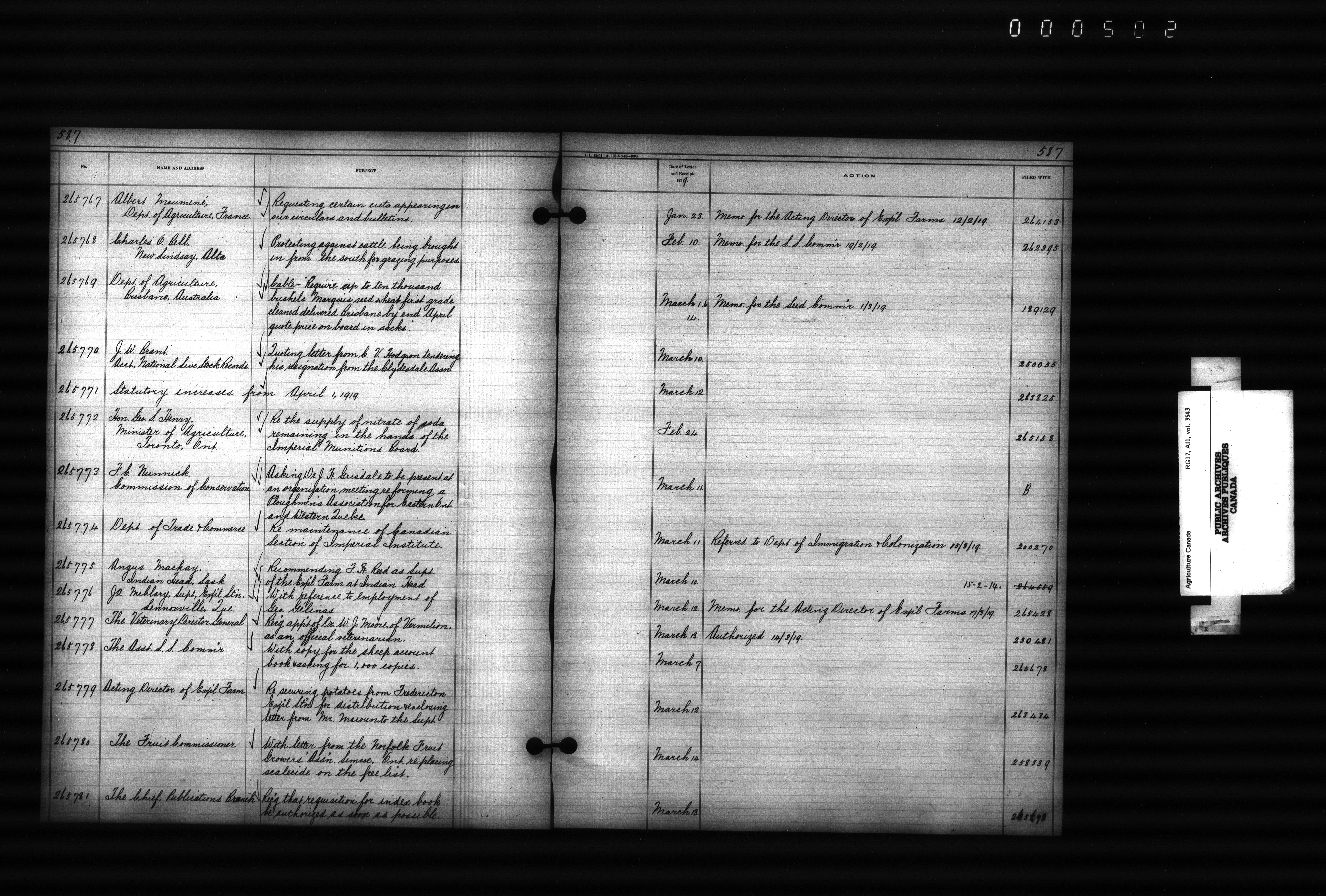 Department of Agriculture : Docket and letterbook registry system, general correspondence - 4399