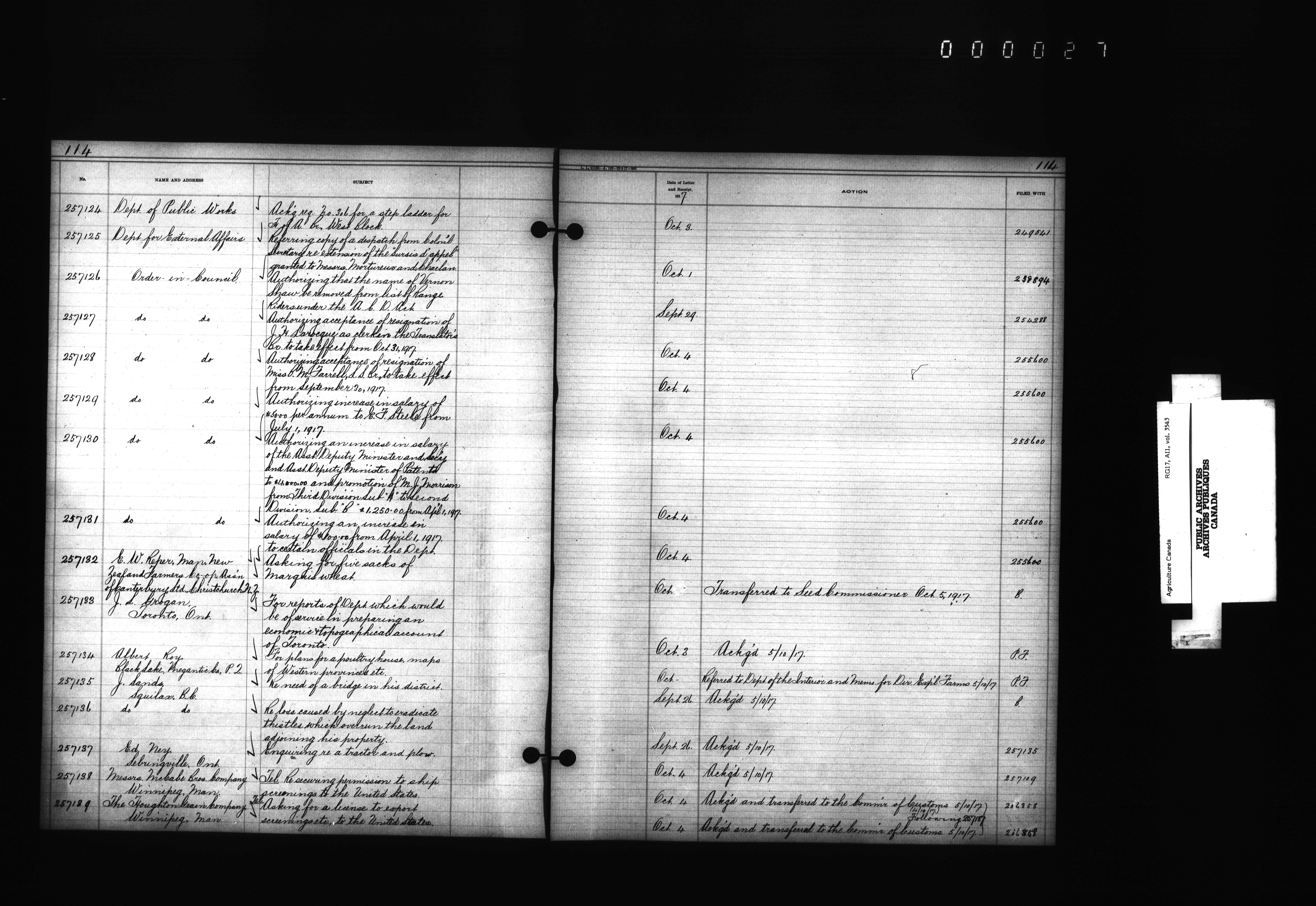 Department of Agriculture : Docket and letterbook registry system, general correspondence - 4399