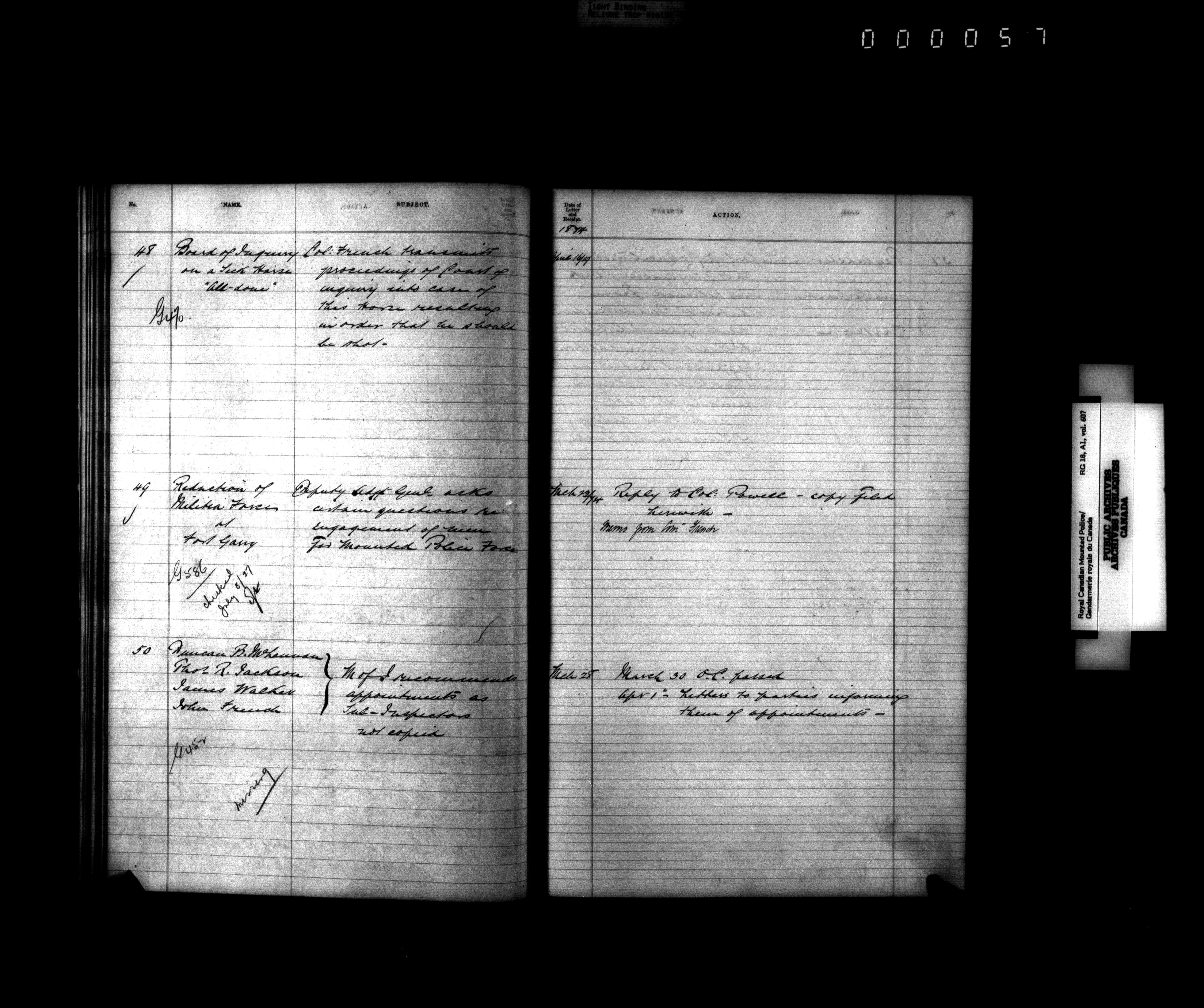 Royal Canadian Mounted Police, Office of the Comptroller, official correspondence : Indexes and registers - 4407
