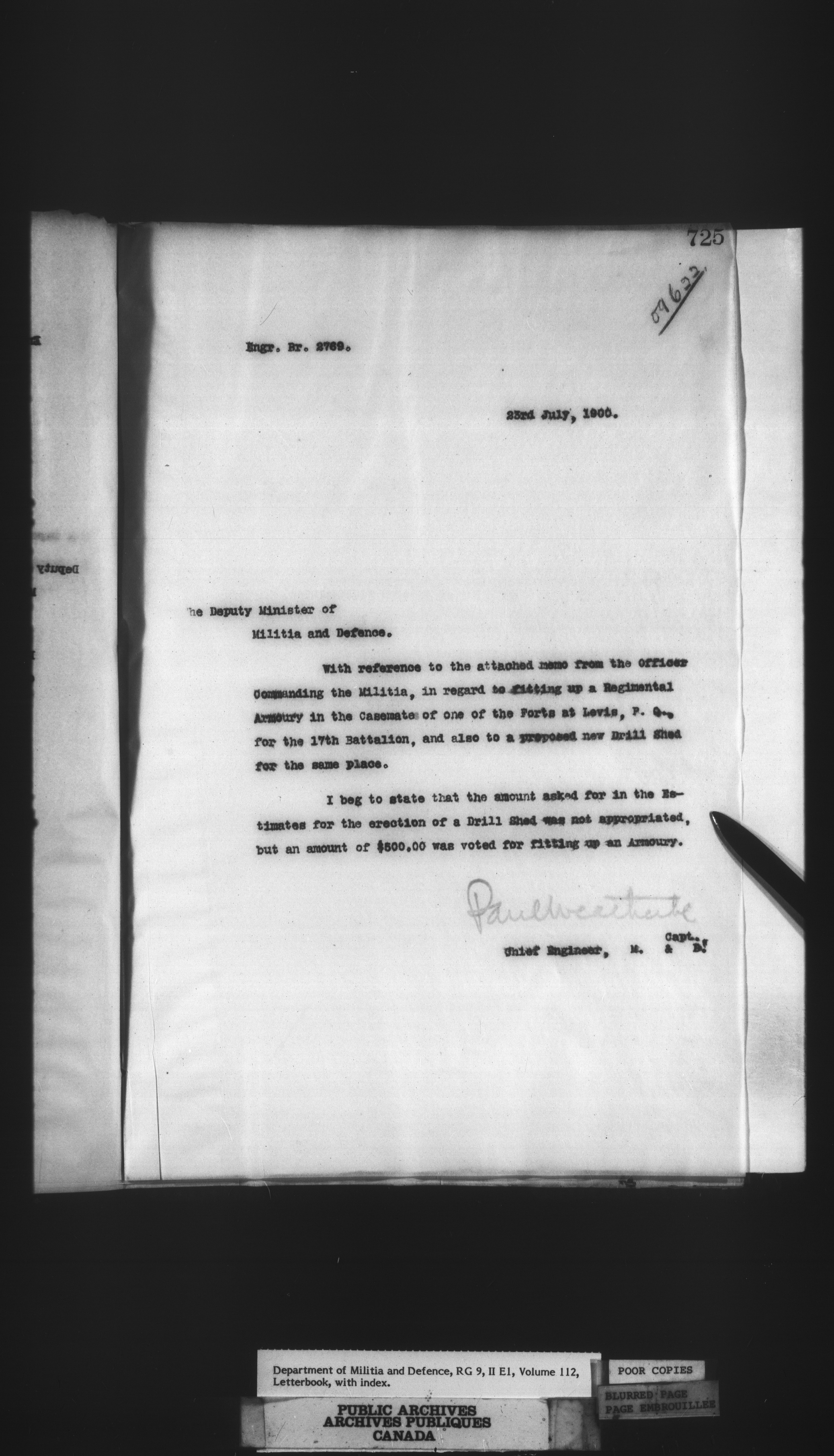 Department of Militia and Defence : Engineer Branch correspondence and letterbooks, 1880-1903 - 441