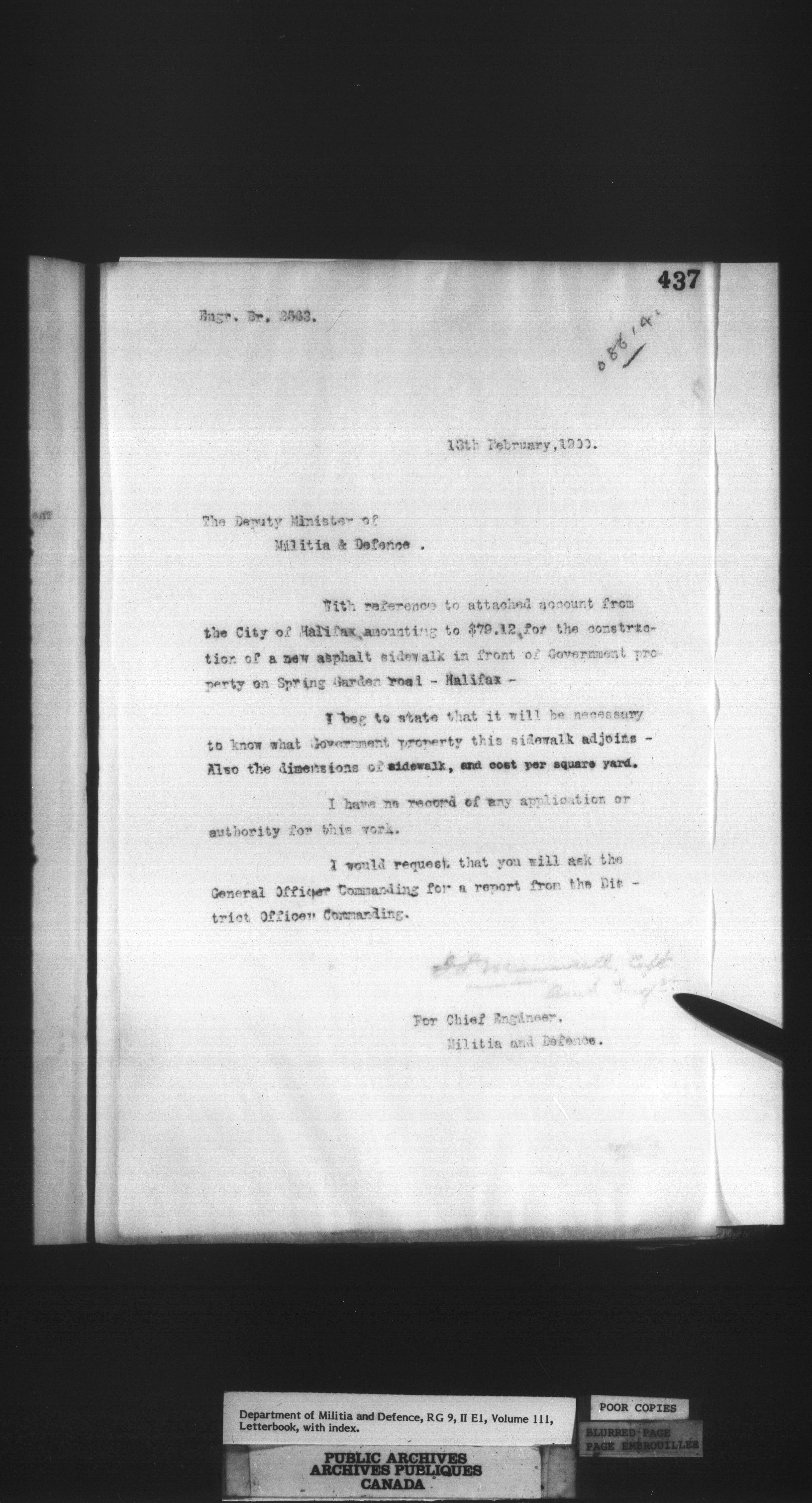Department of Militia and Defence : Engineer Branch correspondence and letterbooks, 1880-1903 - 441