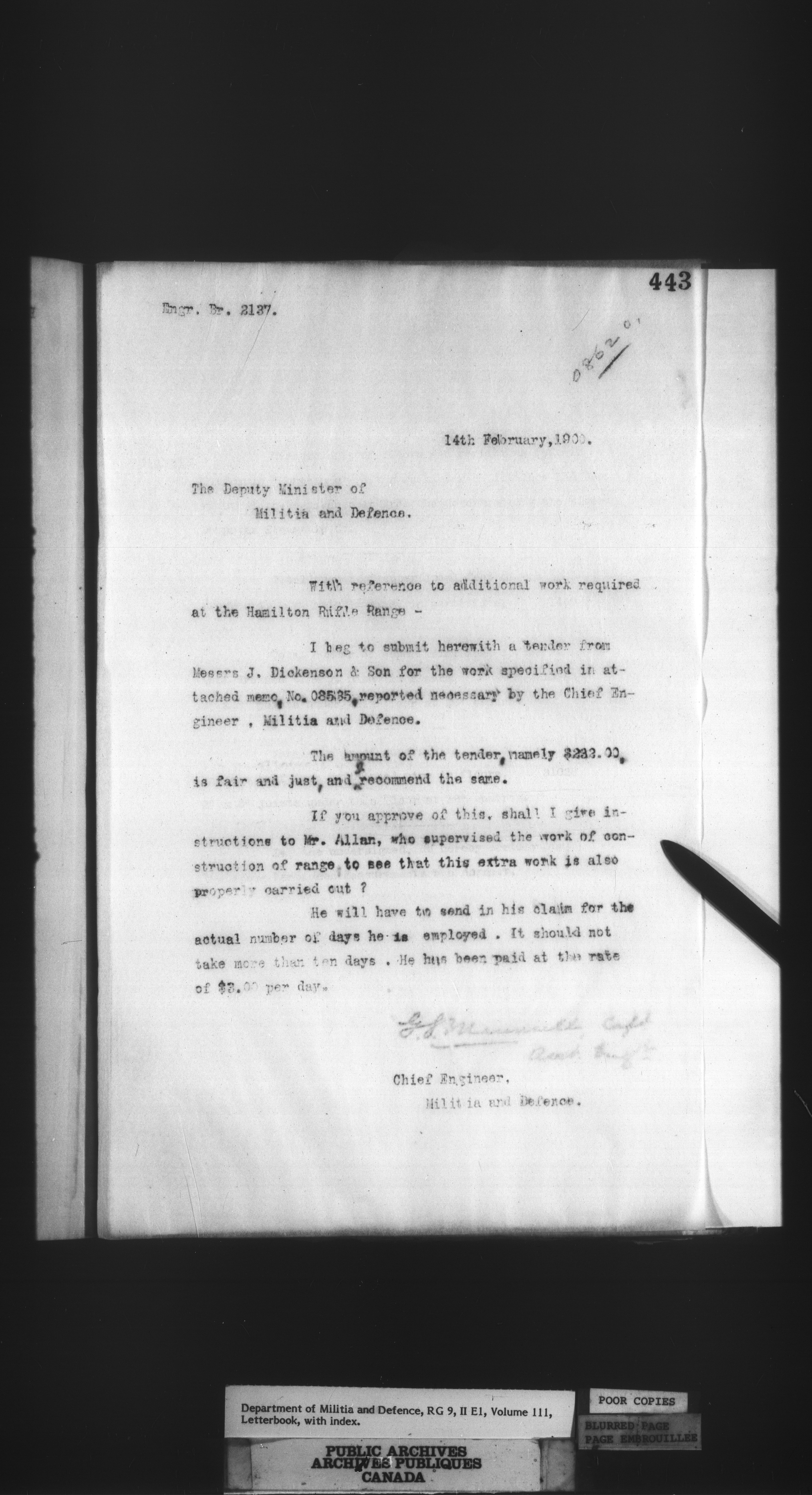 Department of Militia and Defence : Engineer Branch correspondence and letterbooks, 1880-1903 - 441