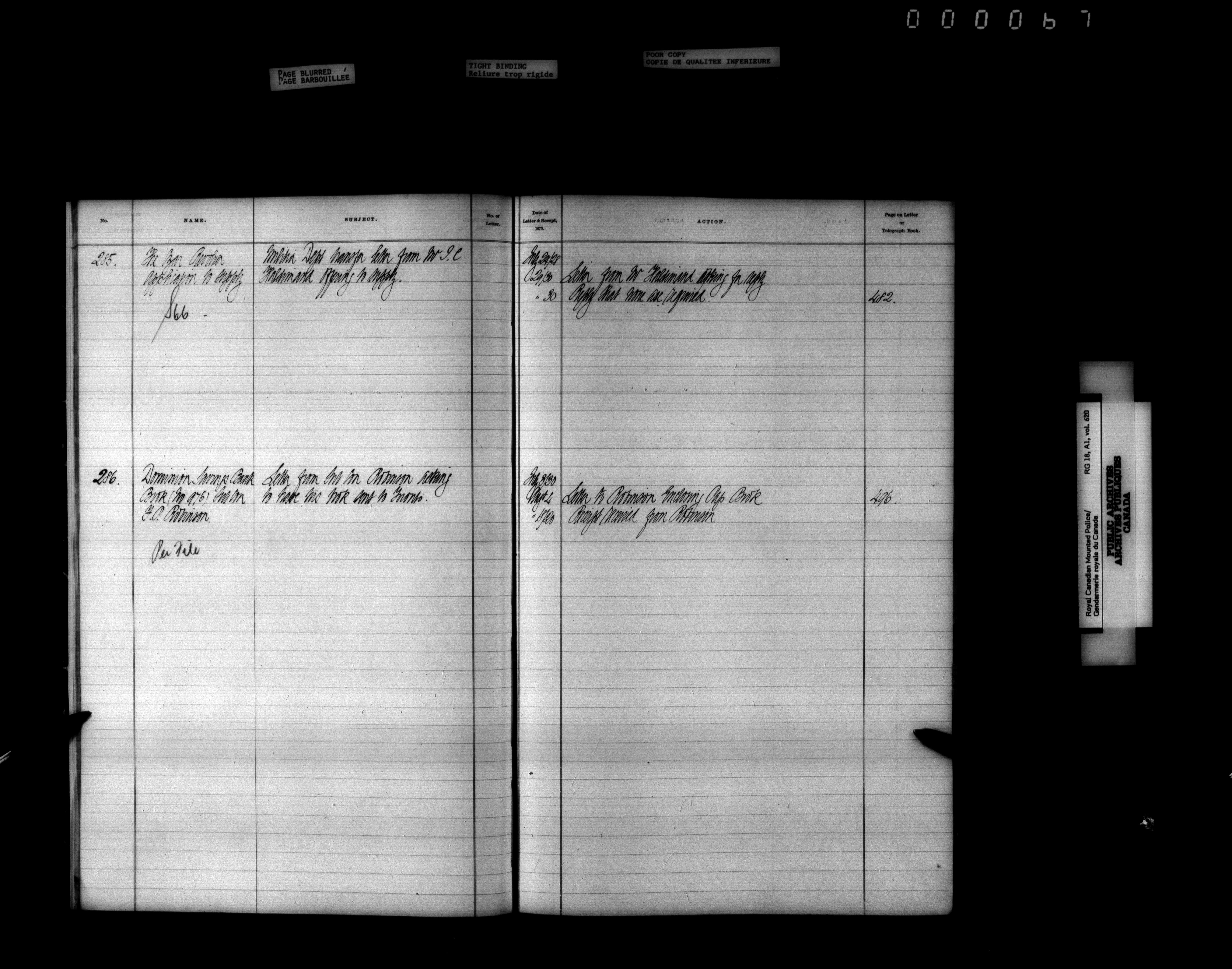 Royal Canadian Mounted Police, Office of the Comptroller, official correspondence : Indexes and registers - 4410