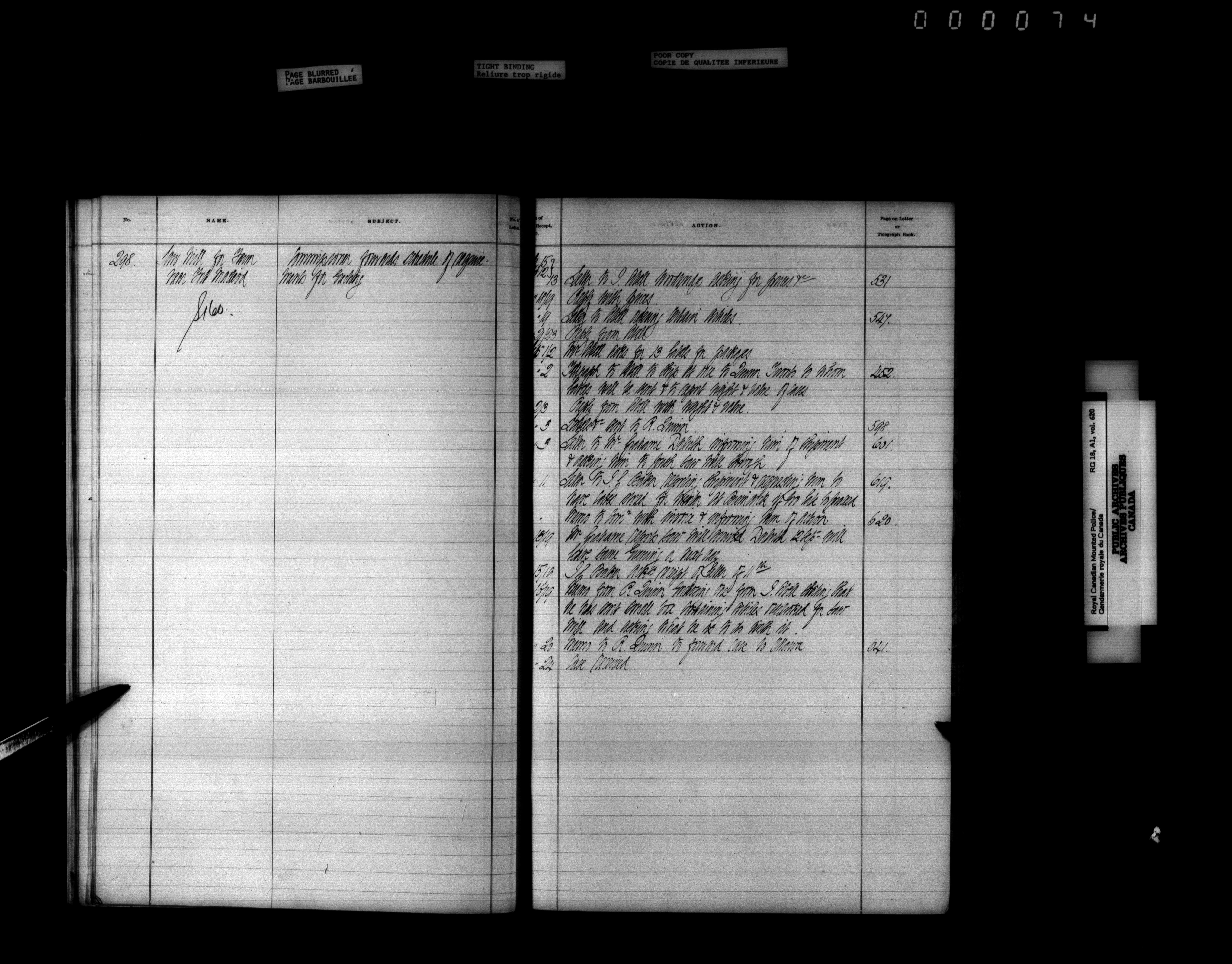 Royal Canadian Mounted Police, Office of the Comptroller, official correspondence : Indexes and registers - 4410