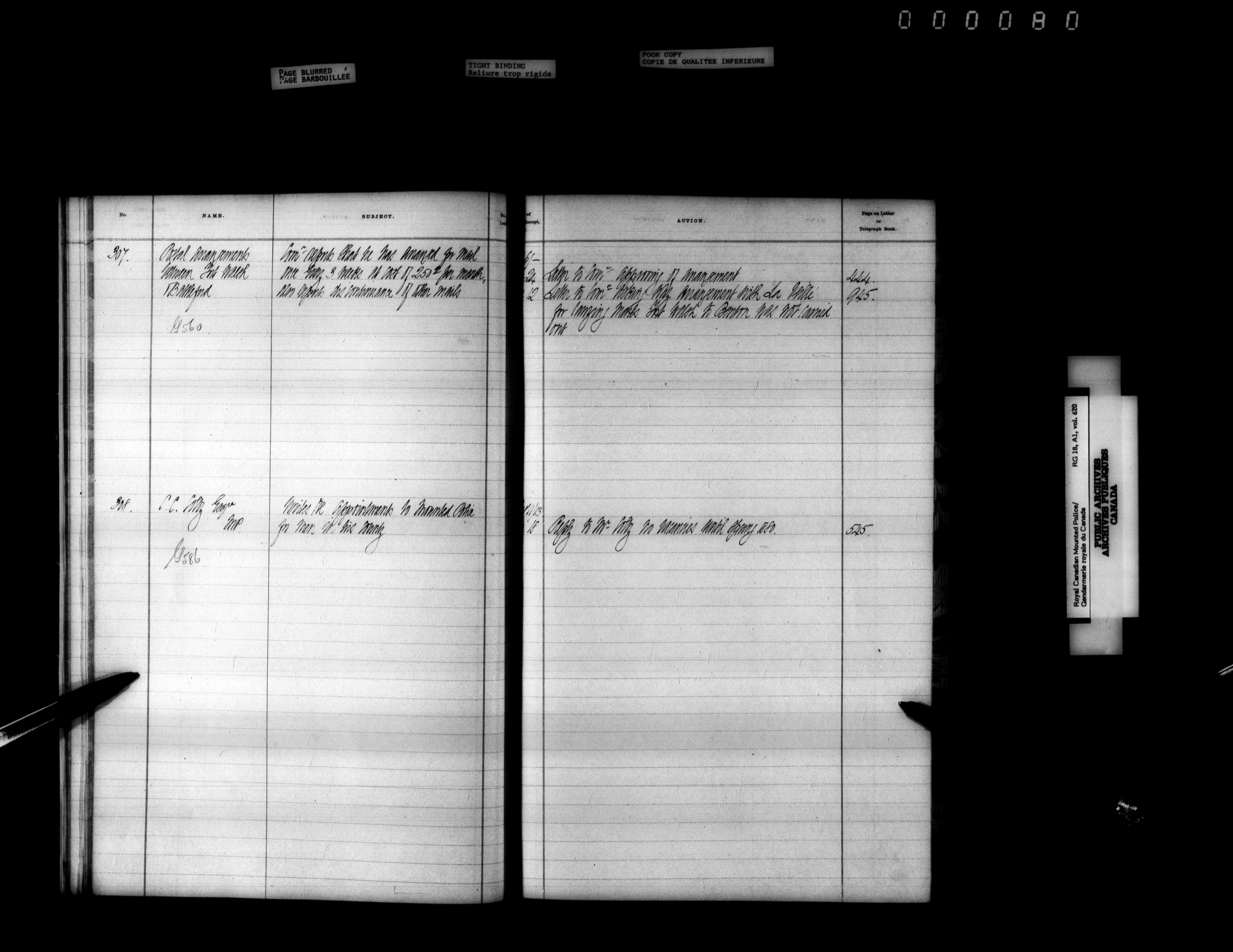 Royal Canadian Mounted Police, Office of the Comptroller, official correspondence : Indexes and registers - 4410