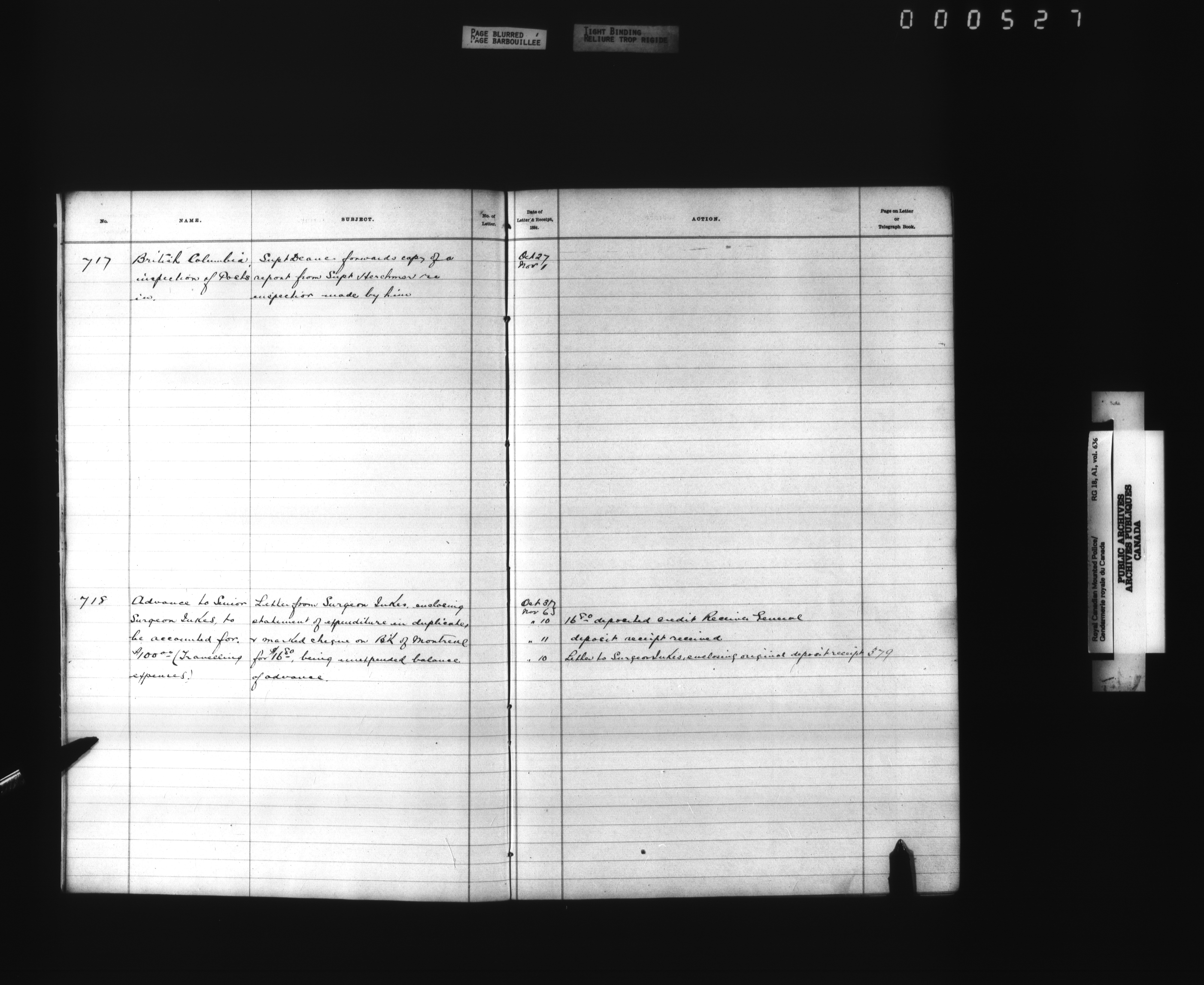 Royal Canadian Mounted Police, Office of the Comptroller, official correspondence : Indexes and registers - 4414